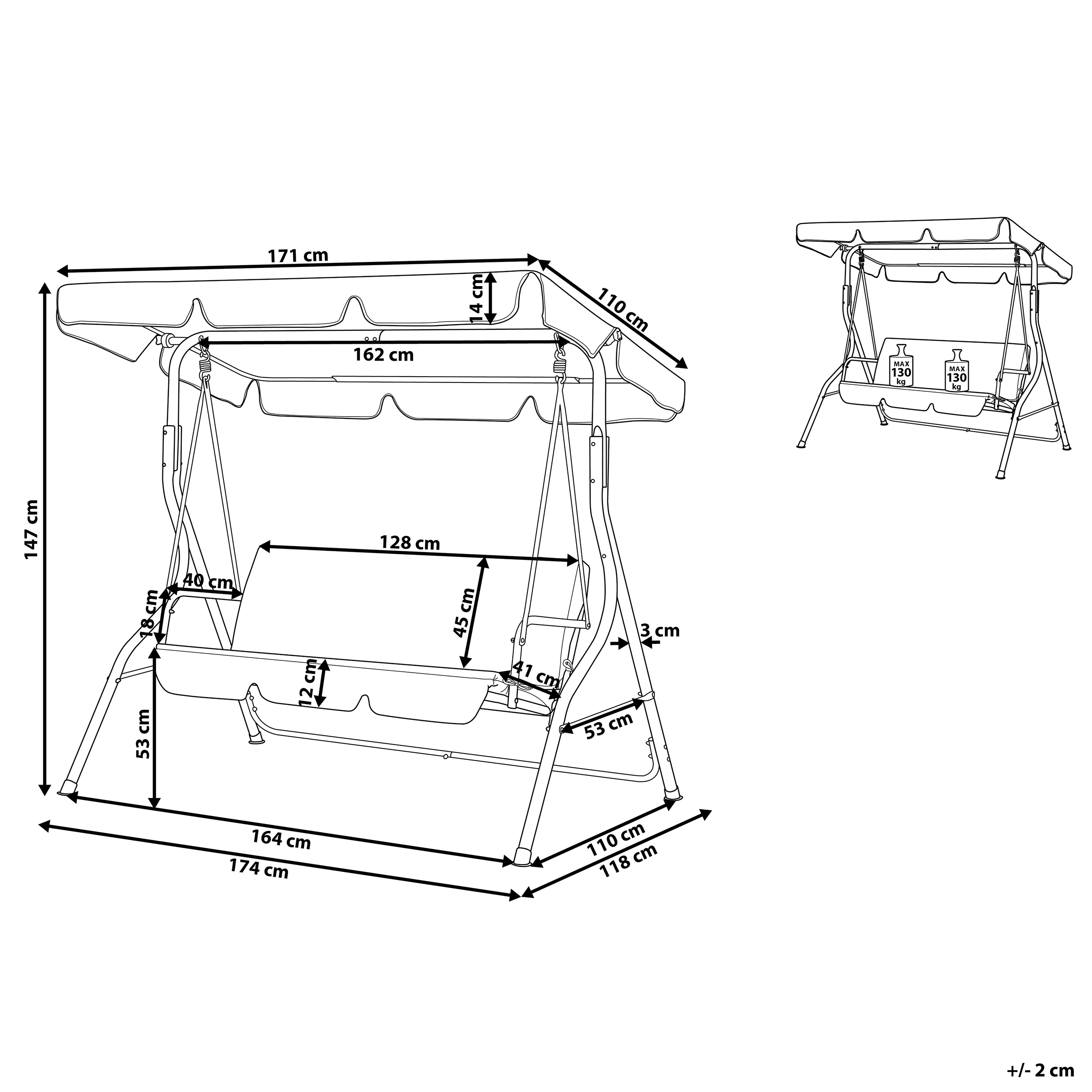 Klassinen pihakeinu. Tämä viehättävä puutarhakeinu luo mukavan paikan istua ja viettää aikaa yhdessä ystävien kanssa. Vankasta jauhemaalatusta teräksestä valmistettu runko takaa kestävyyden ja vakauden. Jämäkästä polyesteristä valmistettu katos on likaa hylkivää, tarjoten täydellisen suojan auringolta kuumina kesäpäivinä. Korkea selkänoja ja leveä, pehmustettu istuin tarjoavat mukavuuden vuosiksi eteenpäin. Trendikkään vihreän ja valkoisen väriset raidat korostavat mustaa runkoa kauniisti, saaden puutarhakeinun sopimaan moniin erilaisiin sisustuksiin, retrotyylisistä moderneihin.