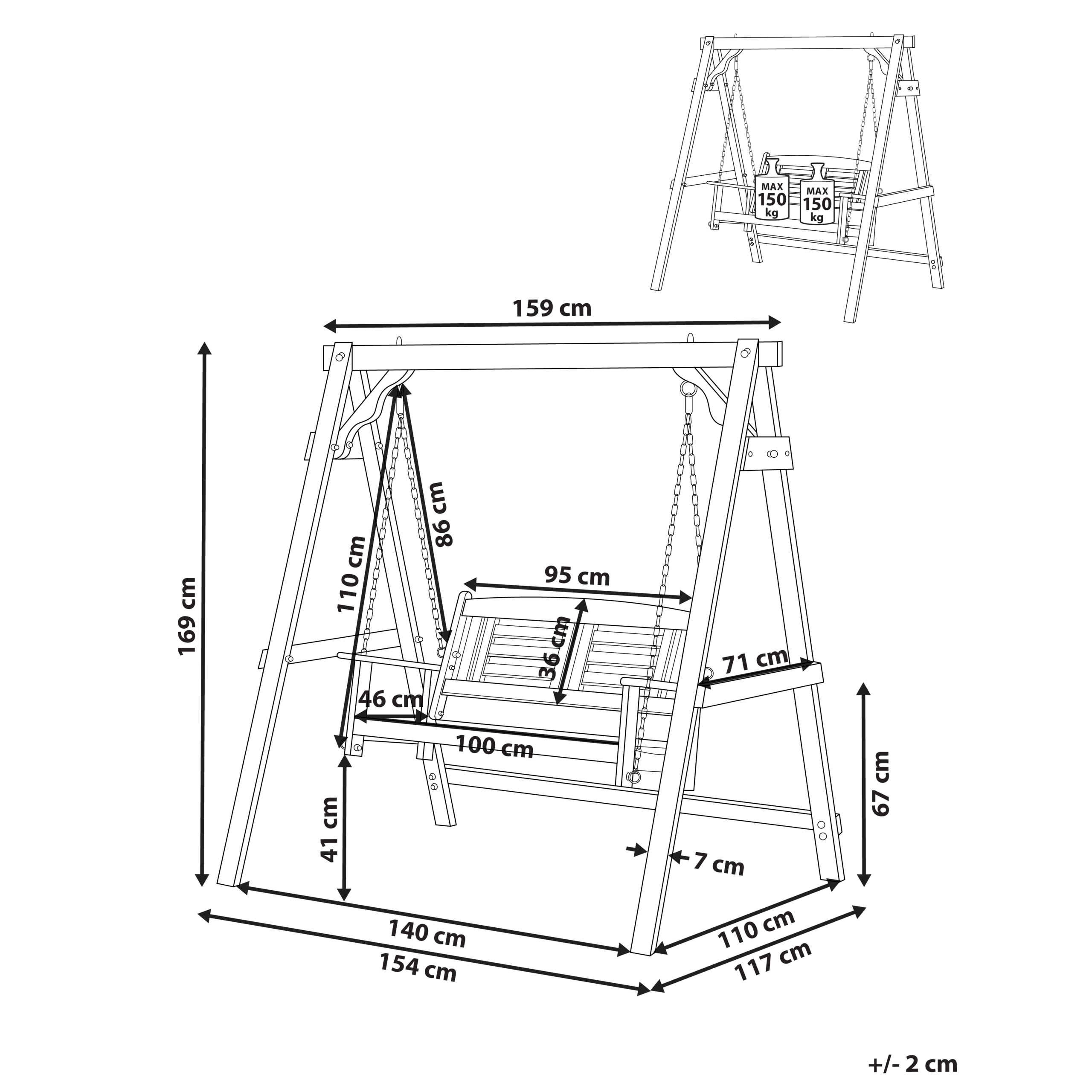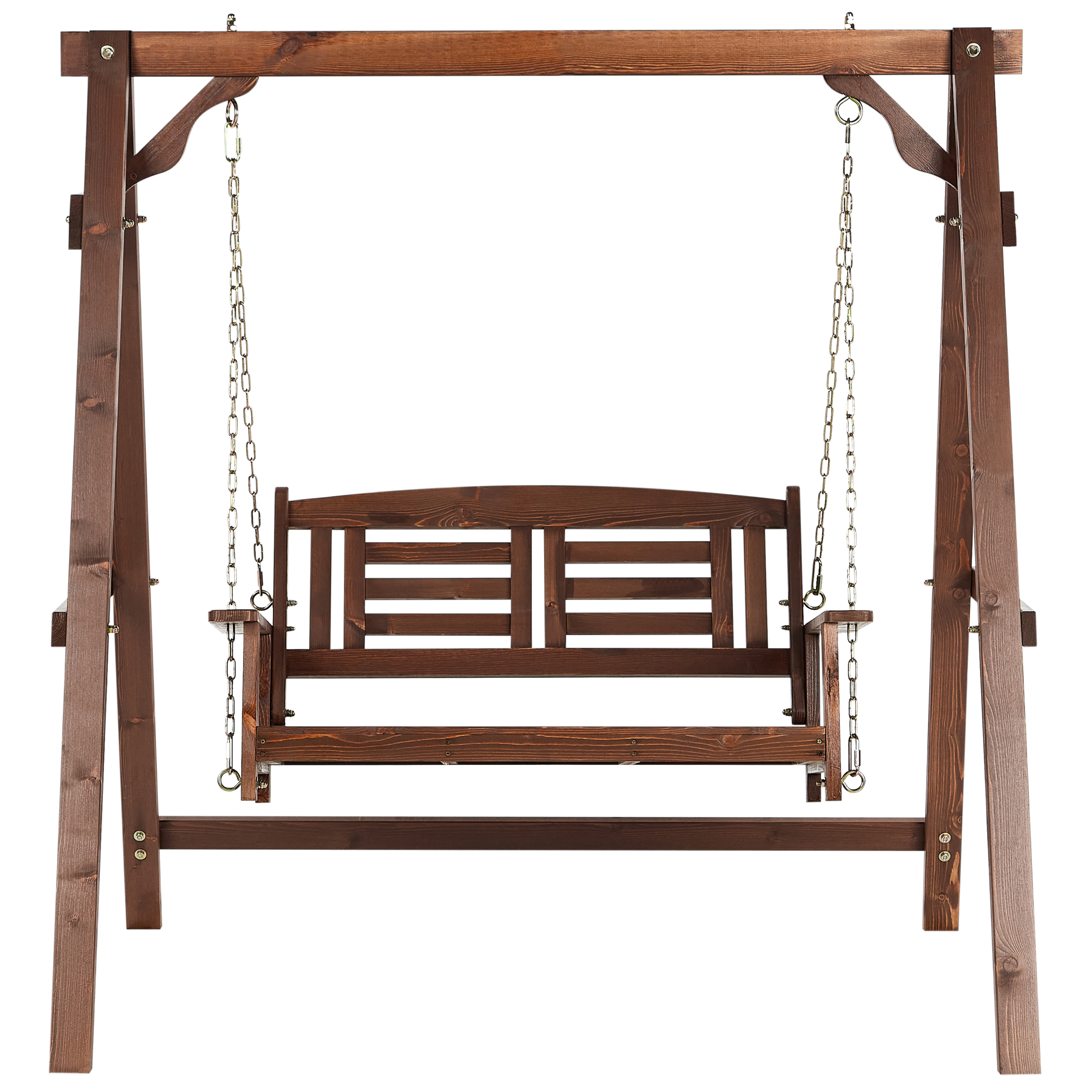 Perinteinen puukeinu puutarhaan. Luo ulkotilaasi viihtyisä pakopaikka tällä kauniilla ja elegantilla puutarhakeinulla. Se on valmistettu kokonaan kestävästä kuusesta, jonka tumma sävy tuo luonnonviehätystä ja rakenne tarjoaa kestävyyttä sekä tukevuutta. Lempeä keinuva liike tekee siitä erinomaisen paikan rentoutumiseen ja seurusteluun raikkaasta ilmasta nauttien.