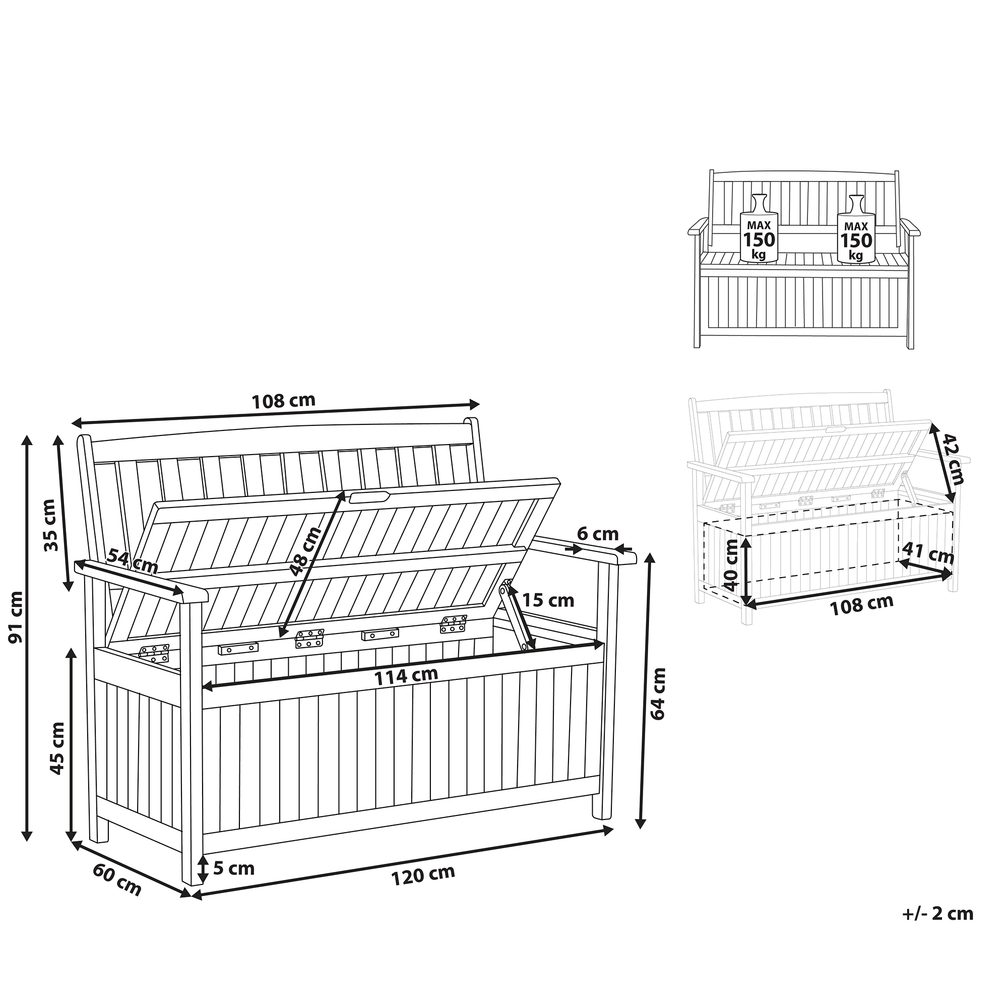 Puutarhapenkki pehmusteella SOVANA 120 cm säilytystila akaasia Punainen