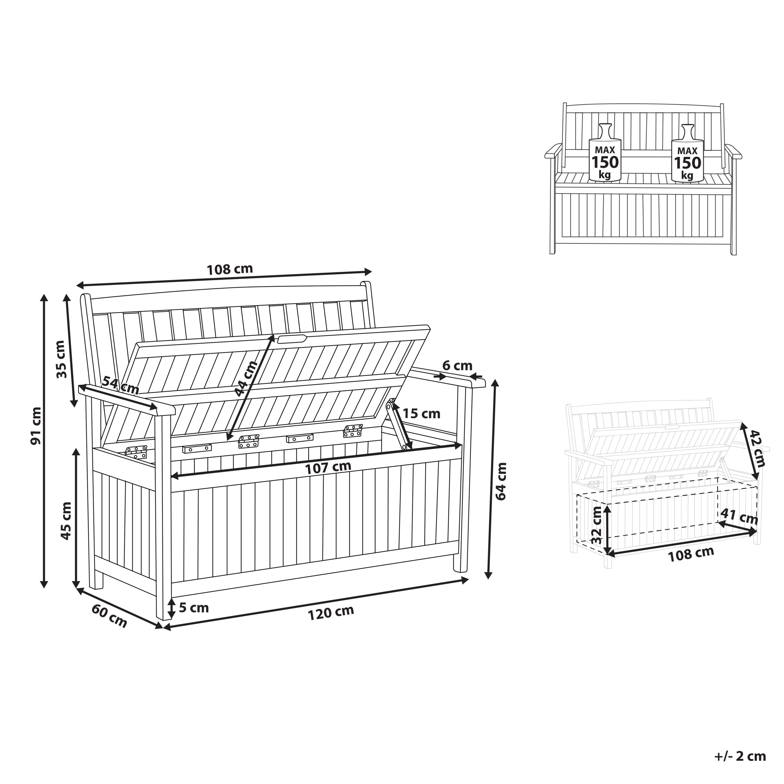 Puutarhapenkki pehmusteella SOVANA 120 cm säilytystila akaasia Valkoinen