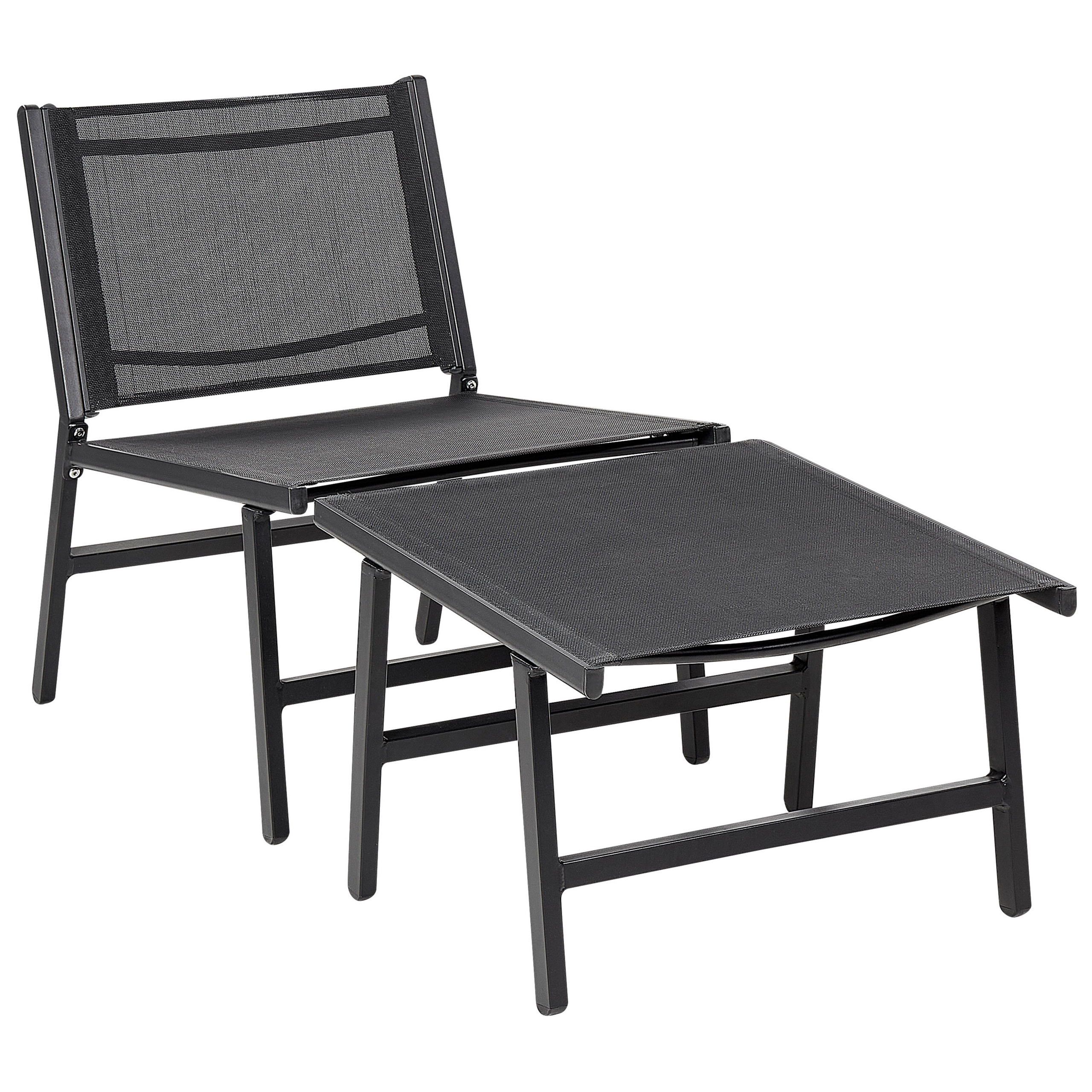 Moderni ulkotuoli rahilla. Päivitä ulkotilaasi tällä puutarhatuolin ja rahin setillä, joka sopii täydellisesti rentoutumiseen ja auringonottoon lämpiminä päivinä. Molemmat kalusteet on valmistettu kestävästä ja helppohoitoisesta alumiinista sekä tekstiilistä, minkä ansiosta ne sopivat erinomaisesti puutarhaan tai terassille. Lisäksi ne kestävät UV-säteilyä, vettä ja erilaisia sääolosuhteita, mikä tekee tuolista ja rahista pitkäikäisiä. Setin tyylikäs musta väri mahdollistaa sen sovittamisen erilaisiin moderneihin sisustustyyleihin.
