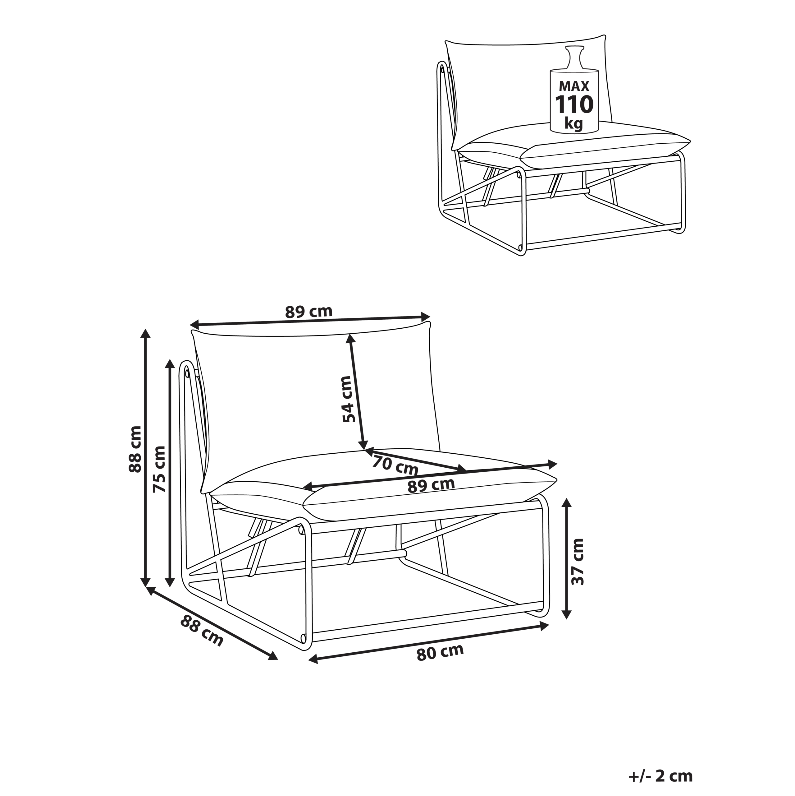 Kalteva käsinojaton tuoli tyynyillä. Tämä ylimitoitettu puutarhatuoli on suunniteltu tuomaan tilaan mukavuutta ja tyyliä. Puhdas, geometrinen teräsrunko ja muhkeat tyynyt luovat modernin mutta kutsuvan tunnelman, minkä ansiosta tuoli sopii täydellisesti rentoutumiseen niin sisällä kuin ulkona. Tyynyjen vettä hylkivät ja pestävät irrotettavat päälliset varmistavat pitkäikäisen kestävyyden ja helppohoitoisuuden myös muuttuvissa sääolosuhteissa. Yhdistä tuoli malliston suuremman sohvan kanssa yhtenäisen ja elegantin oleskelualueen luomiseksi.