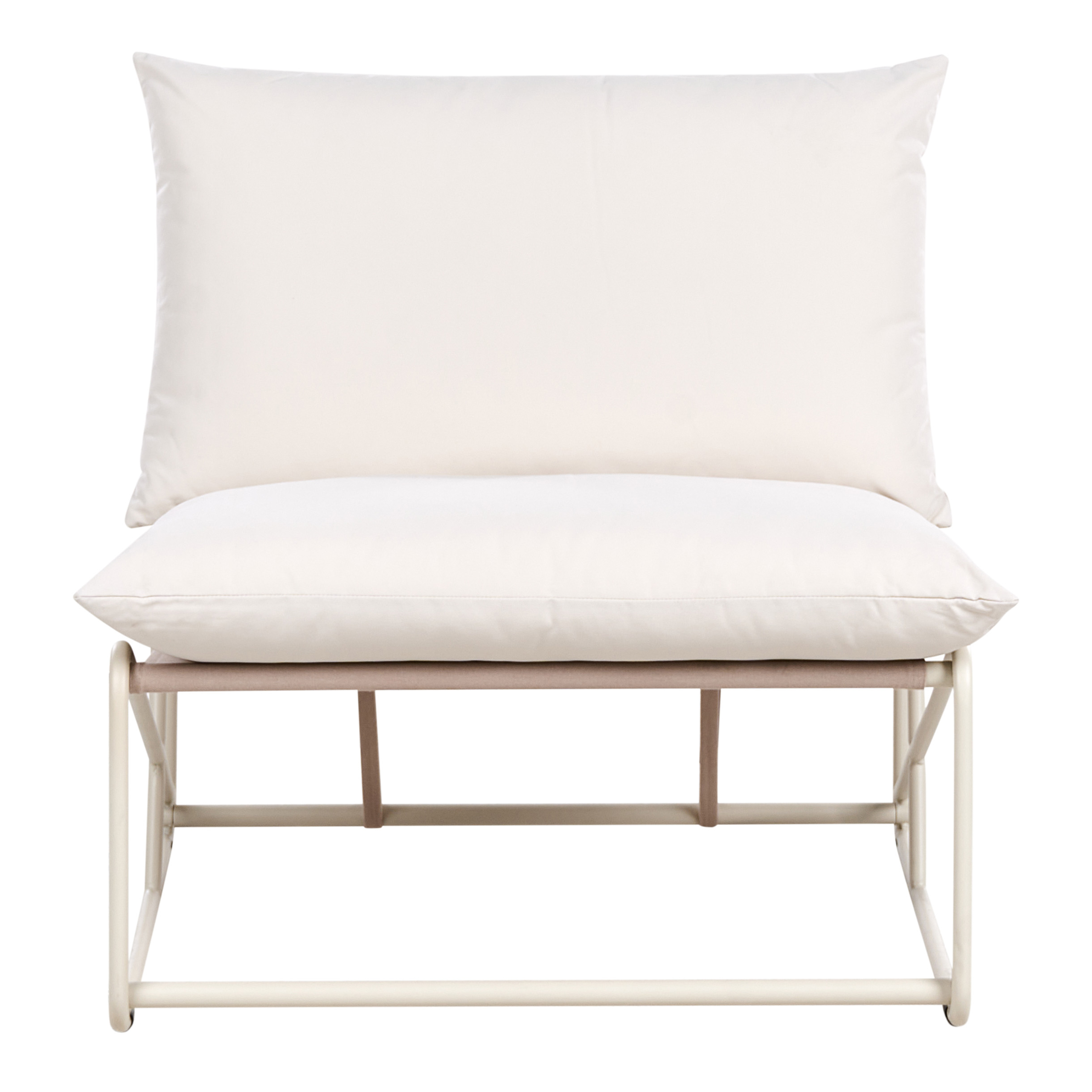 Kalteva käsinojaton tuoli tyynyillä. Tämä ylimitoitettu puutarhatuoli on suunniteltu tuomaan tilaan mukavuutta ja tyyliä. Puhdas, geometrinen teräsrunko ja muhkeat tyynyt luovat modernin mutta kutsuvan tunnelman, minkä ansiosta tuoli sopii täydellisesti rentoutumiseen niin sisällä kuin ulkona. Tyynyjen vettä hylkivät ja pestävät irrotettavat päälliset varmistavat pitkäikäisen kestävyyden ja helppohoitoisuuden myös muuttuvissa sääolosuhteissa. Yhdistä tuoli malliston suuremman sohvan kanssa yhtenäisen ja elegantin oleskelualueen luomiseksi.