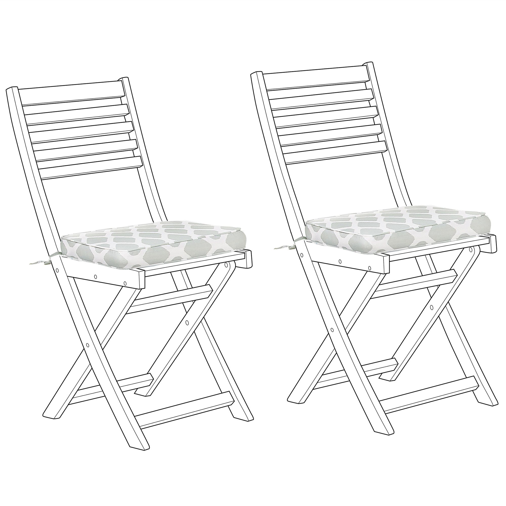 Muhkea pehmustesetti puutarhatuoleille. Nämä erittäin mukavat istuintyynyt tekevät puutarhatuoleistasi pehmeät istua ja tuovat tyylikkään lisän tilaan kauniilla värillään. Toiminnallisilla siteillä varustetut tyynynpäälliset on valmistettu kulutusta kestävästä ja helppohoitoisesta polyesteristä, joka kestää kosteutta sekä UV-säteilyä. Molemmat pehmusteet on täytetty muhkealla vaahtomuovilla.