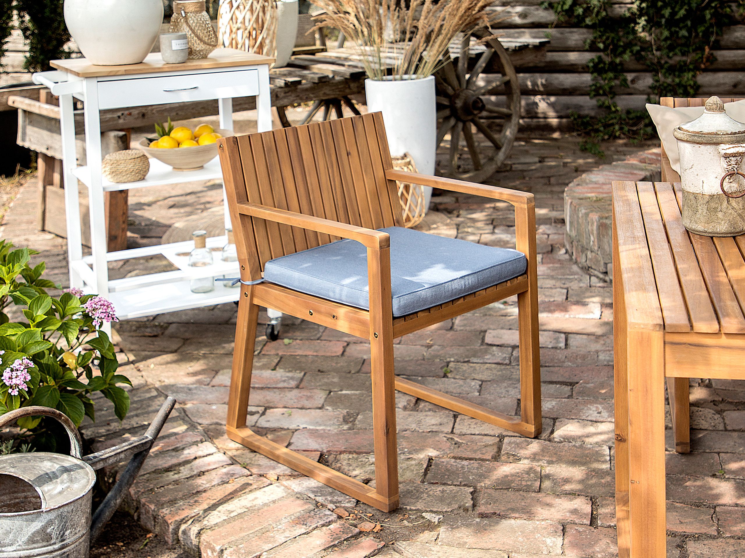 Modernit istuintyynyt puutarhatuoleille. Tämä käytännöllinen pehmuste tarjoaa lisämukavuutta istumiseen. Laadukas materiaali on UV- ja kosteudenkestävä ja sitä voidaan käyttää ulkotiloissa. Sen moderni väri tekee siitä sopivan useisiin erilisiin sisustustyyleihin. Päällinen on varustettu vetoketjulla ja voidaan poistaa tarpeen mukaan ja pestä käsin.