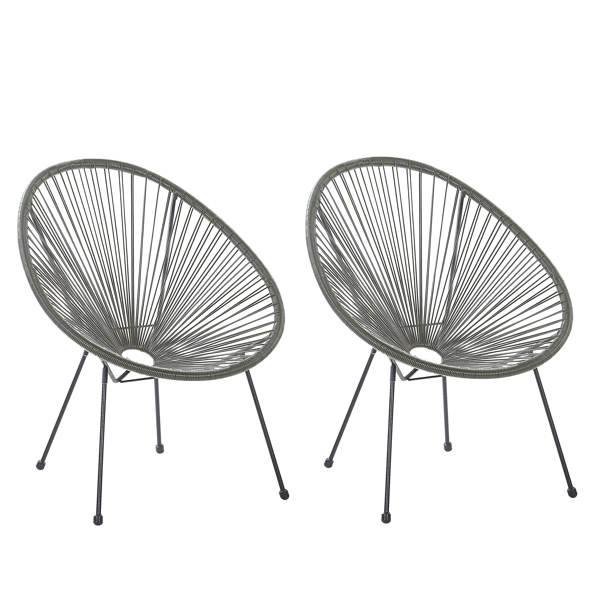 2 polyrottinkista puutarhatuolia. Tämä kahden puutarhatuolin setti, joka on saanut inspiraationsa ikonisesta meksikolaisesta muotoilusta, piristää minkä tahansa sisä- tai ulkotilan oleskelualuetta. Narutuolien istuinten tyylikäs punos on valmistettu tummanharmaasta polyrottingista. Tukeva, kolmijalkainen runko on valmistettu kestävästä jauhemaalatusta teräksestä vakauden takaamiseksi. Nämä narutuolit ovat trendikäs viimeistelevä silaus niin retrotyylisiin kuin moderneihinkin puutarhoihin tai olohuoneisiin.