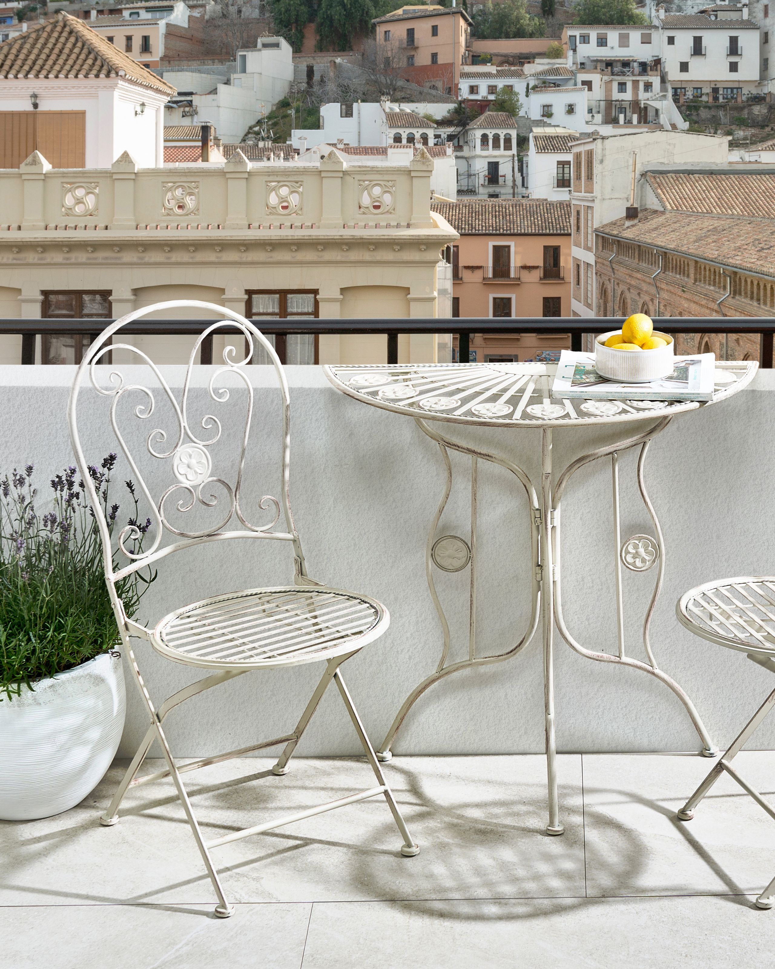 Retrotyylinen kahden puutarhatuolin setti. Kohota puutarhaa tai parveketta tällä tyylikkäällä kahden puutarhatuolin setillä, jota koristaa hienovarainen kukkakuviointi ja vintage-tyylinen viimeistely. Kestävästä raudasta valmistetut tuolit tarjoavat sekä toiminnallisuutta että viehätystä, luoden viihtyisän rentoutumispaikan. Kokoontaitettava rakenne saa ne sopimaan myös pienempiin tiloihin. Ne yhdistävät tyylin ja käytännöllisyyden, mikä tekee niistä erinomaisen lisän monenlaisiin ulkotiloihin.