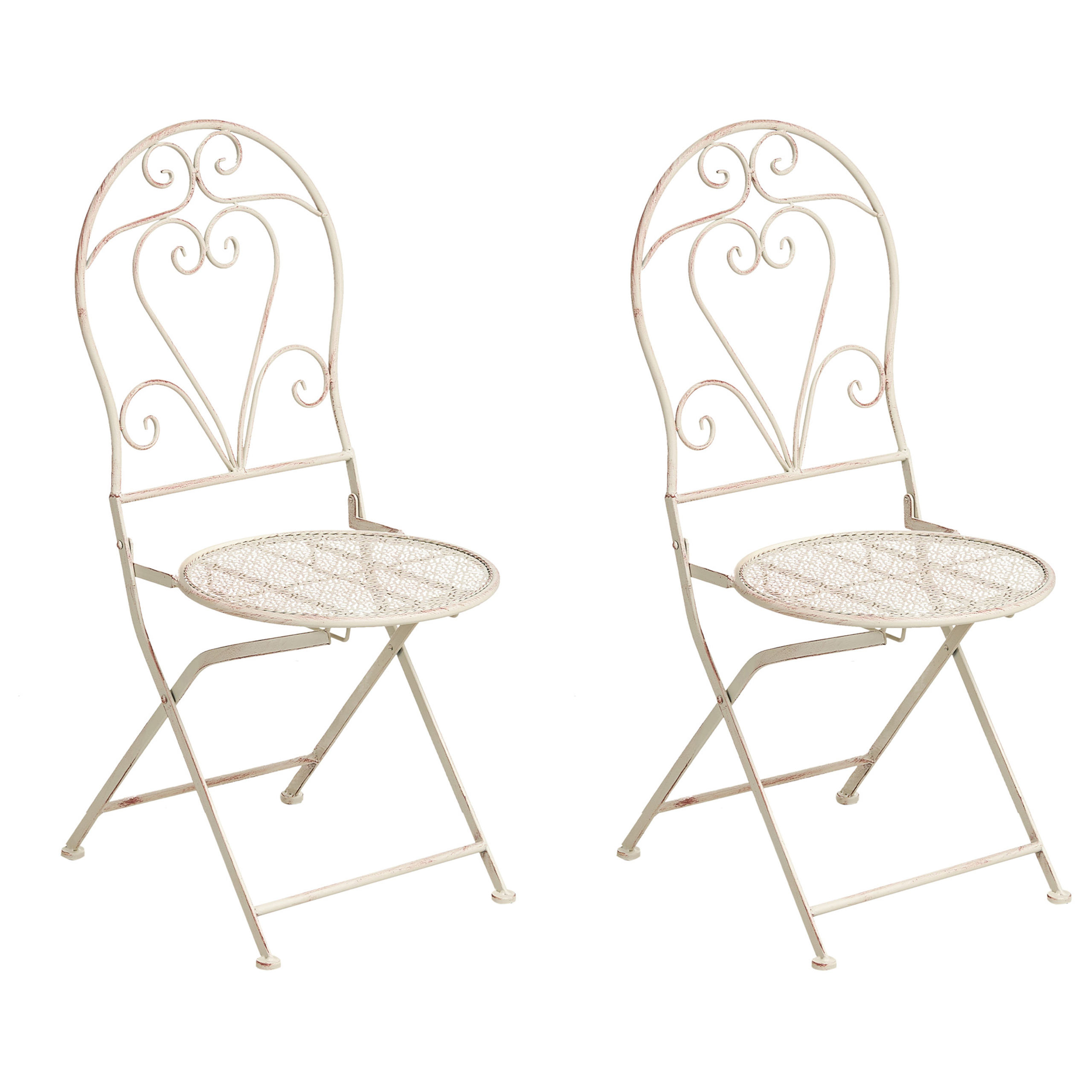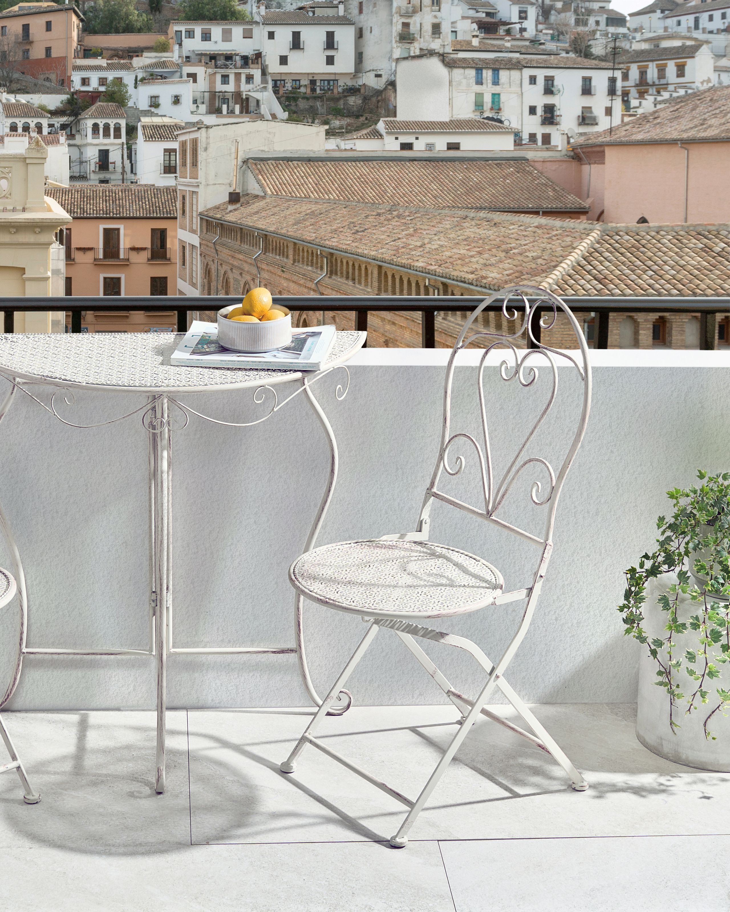 Retrotyylinen kokoontaitettava parveketuolisetti. Tämä kahden kokoontaitettavan puutarhatuolin setti yhdistää käytännöllisyyden vintage-viehätykseen ja auttaa luomaan ulkotilaan viihtyisän vetäytymispaikan. Tukevasta raudasta valmistetut ja pehmeän kuluneen näköiseksi viimeistellyt tuolit takaavat kestävyyden ja tyylikkään ilmeen. Hienovarainen muotoilu lisää ajatonta eleganssia, mikä tekee tuoleista täydellisen valinnan jokaiselle parvekkeelle tai puutarhaan.