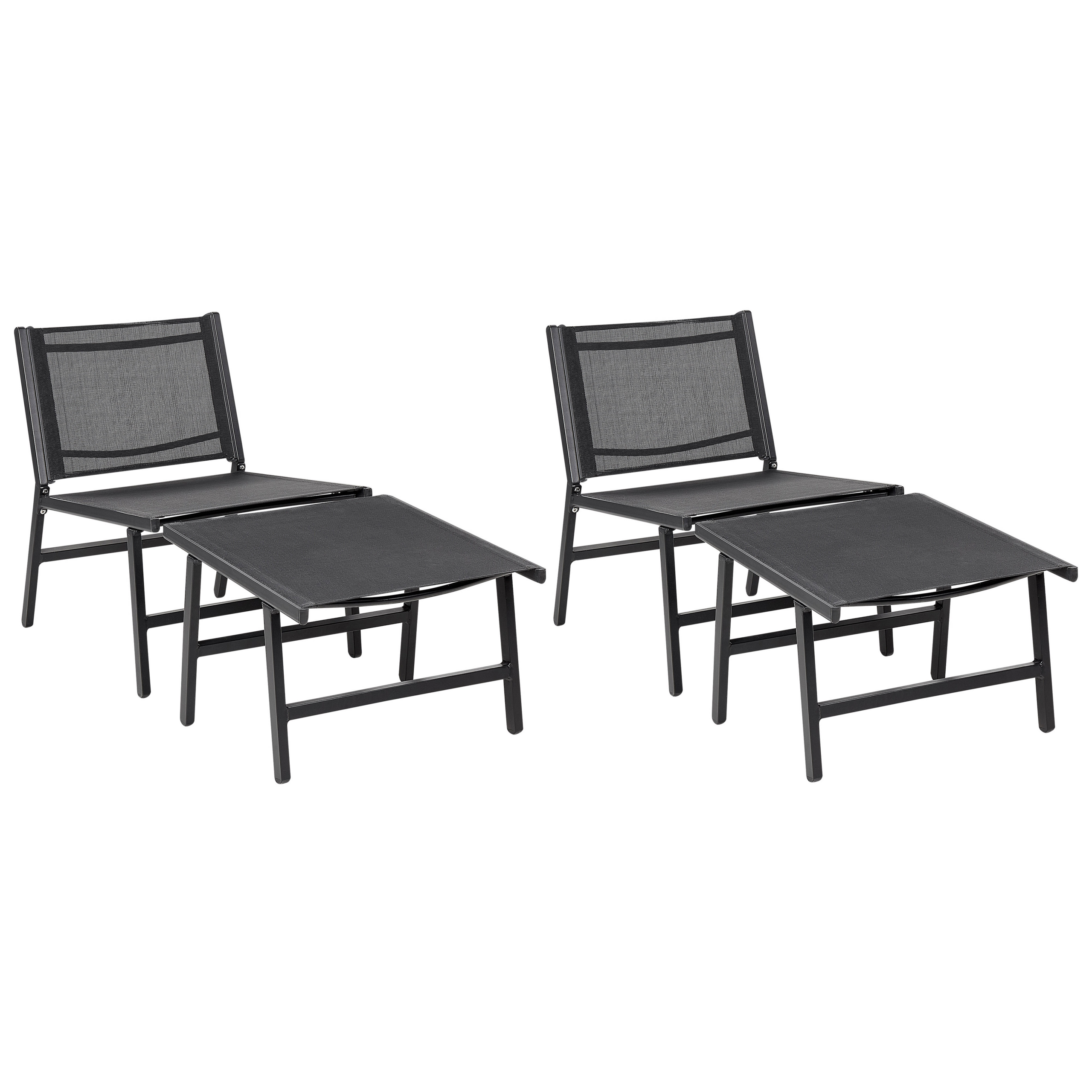 Moderni ulkotuolisetti kahdella rahilla. Päivitä ulkotilaasi tällä kahden puutarhatuolin ja rahin setillä, joka sopii täydellisesti rentoutumiseen ja auringonottoon lämpiminä päivinä. Kaikki kalusteet on valmistettu kestävästä ja helppohoitoisesta alumiinista sekä tekstiilistä, minkä ansiosta ne sopivat erinomaisesti puutarhaan tai terassille. Lisäksi ne kestävät UV-säteilyä, vettä ja erilaisia sääolosuhteita, mikä tekee tuoleista ja raheista pitkäikäisiä. Setin tyylikäs musta väri mahdollistaa sen sovittamisen erilaisiin moderneihin sisustustyyleihin.