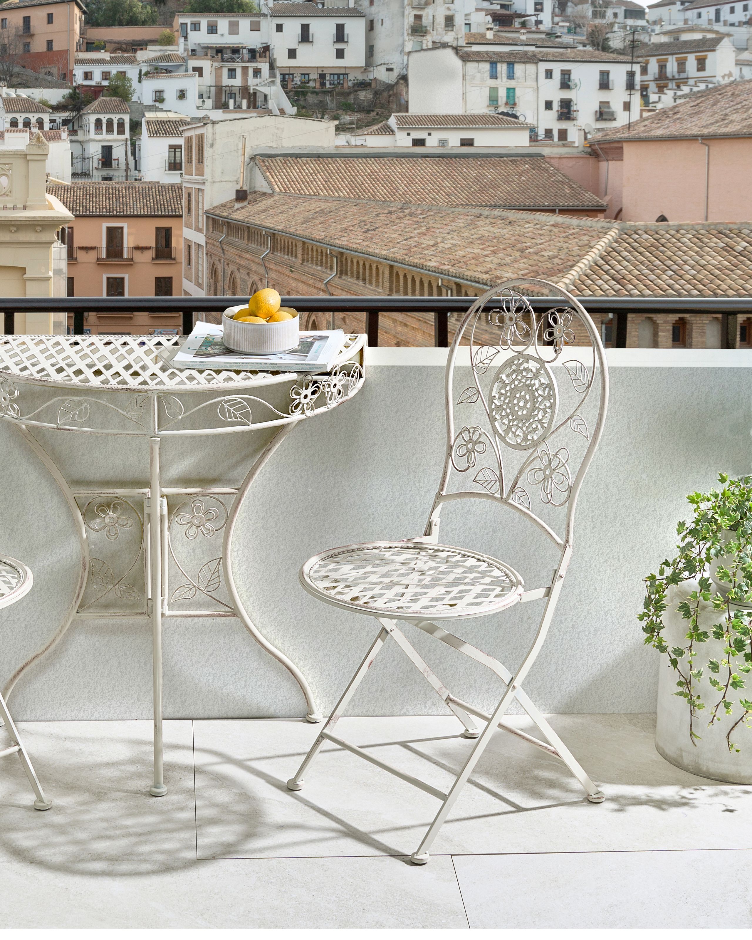 Kokoontaitettava puutarhatuolisetti kasvikuvioilla. Tämä viehättävä kahden puutarhatuolin setti on täydellinen valinta mihin tahansa ulkotilaan. Hienovaraisella mutta yksityiskohtaisella kukka- ja kasvikuvioinnilla viimeistellyt tuolit on valmistettu kestävästä raudasta. Kompaktin kokonsa ja kokoontaitettavan rakenteensa ansiosta ne sopivat erinomaisesti pienempiin tiloihin, tuoden niihin sekä toiminnallisuutta että tyyliä. Puutarhatuolit lisäävät ripauksen eleganssia parvekkeelle tai puutarhaan, ja ne tarjoavat viihtyisän paikan aamukahvien nauttimiseen tai pienten tapaamisten viettämiseen.