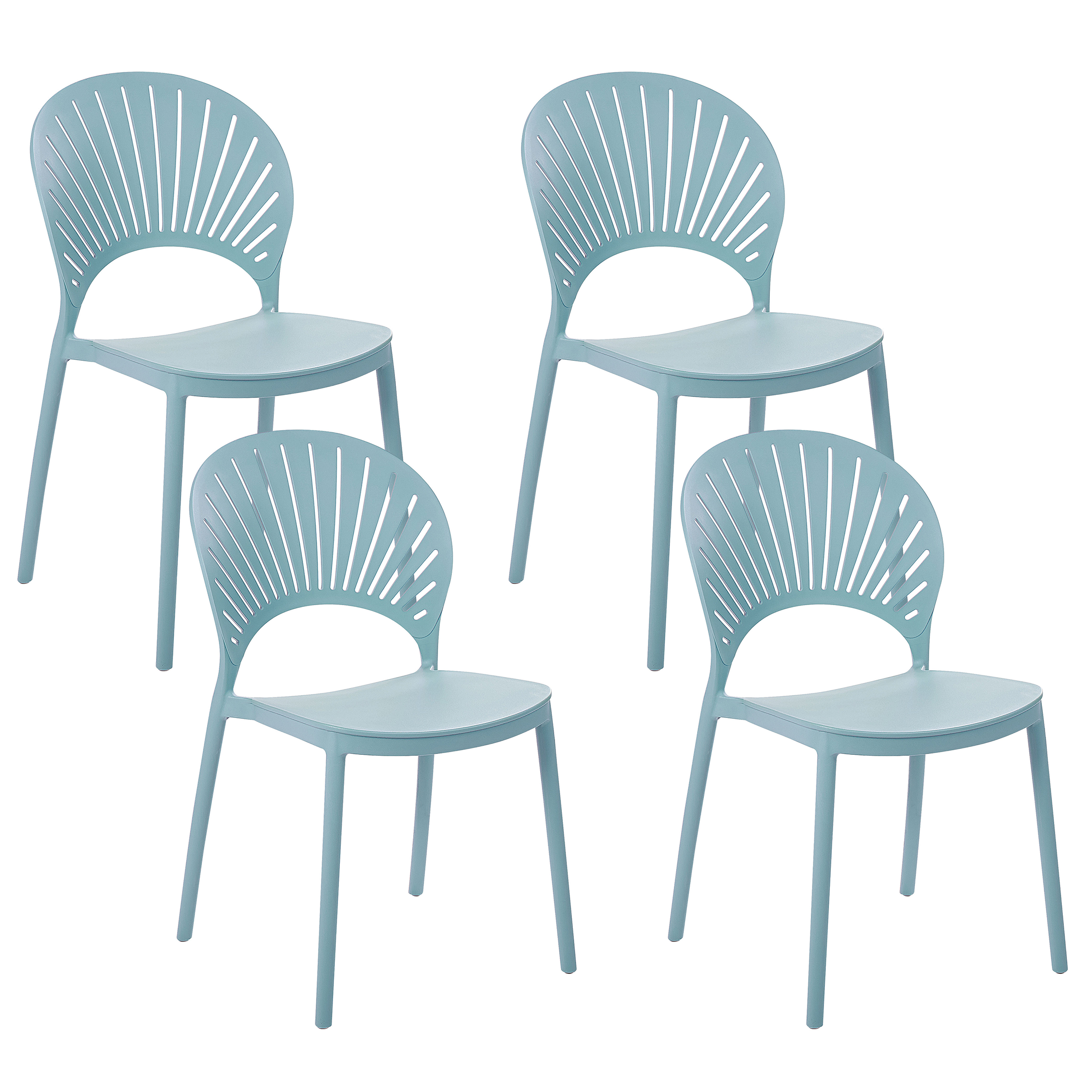 Pinottava muovituolisetti sisä- ja ulkokäyttöön. Kaarevan selkänojan omaavat, tyylikkään vaaleansinisen väriset tuolit tuovat toimivuutta ja trendikästä ilmettä mihin tahansa tilaan. Kestävästä ja helppohoitoisesta muovista valmistettuja tuoleja voidaan käyttää sekä keittiössä että ruokailutilassa, vaihtoehtoisesti voit asettaa ne myös puutarhaan. Koska tuoleissa ei ole käsinojia, ne sopivat minkä tahansa pöytätason alle. Lisäksi tuolit ovat pinottavissa, joten niitä helppo säilyttää silloin, kun ne eivät ole käytössä. Käytännöllinen ja kaunis neljäntuolin ryhmä on se, mitä jokaisesta ulko- ja sisätilasta puuttuu.