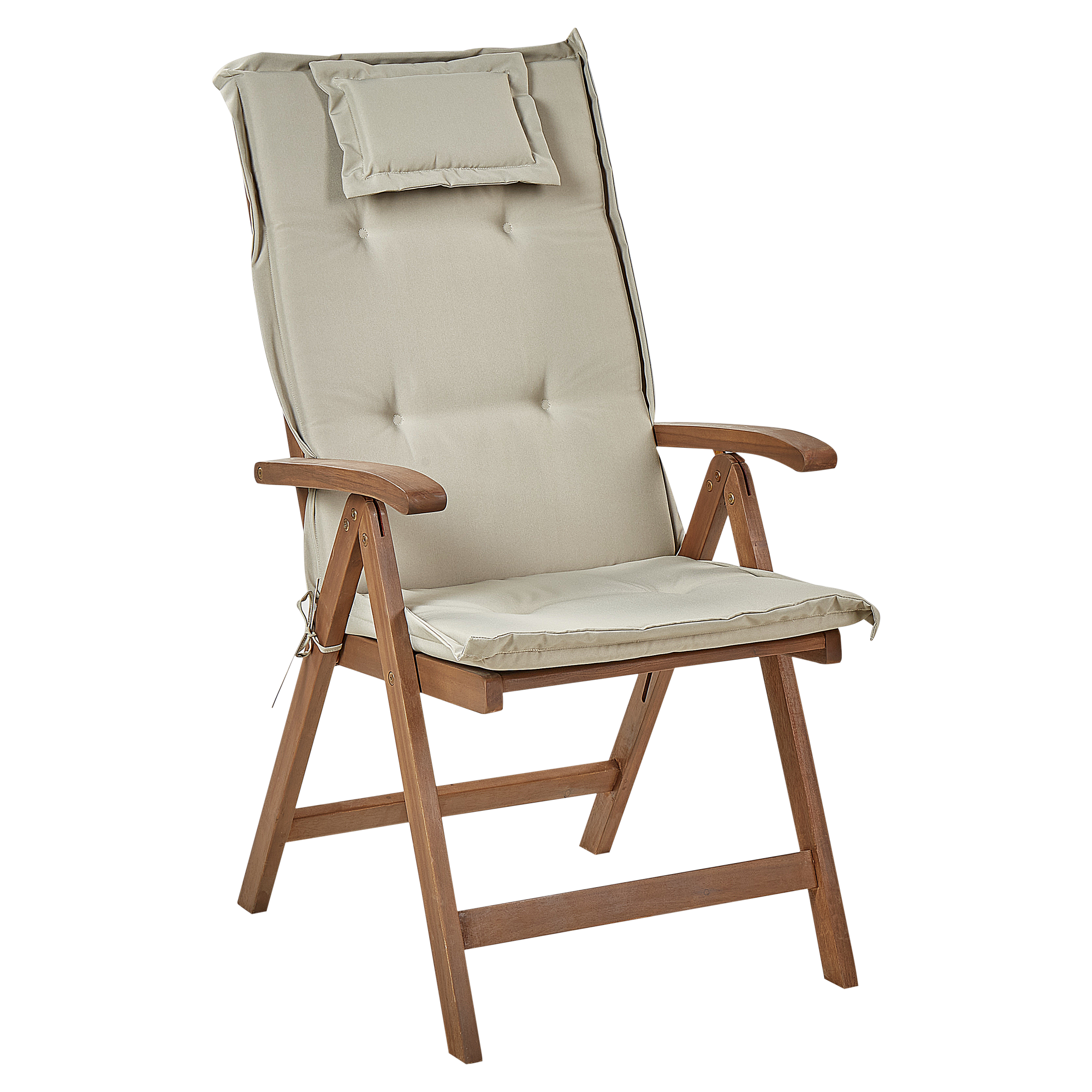 Kokoontaitettava ulkotuolisetti säädettävällä selkänojalla. Tuo ulkotilaan klassisen rustiikkista tyyliä ja lisää istumatilaa tällä puutarhatuolisetillä. Kestävästä ja korkealaatuisesta akaasiasta valmistetut tuolit on helppo sijoittaa moniin erilaisiin tiloihin. Niiden selkänojaa on mahdollista säätää jopa kolmen asennon välillä, joten voit valita tarpeisiisi sopivan asennon helposti. Mukana tulevat pehmusteet takaavat maksimaalisen istumamukavuuden. Lisäksi tuolit ovat kokoontaitettavissa, minkä ansiosta ne on helppo napata mukaan rannalle tai mökille sekä säilyttää kätevästi poissa näkyvistä, silloin kun ne eivät ole käytössä.