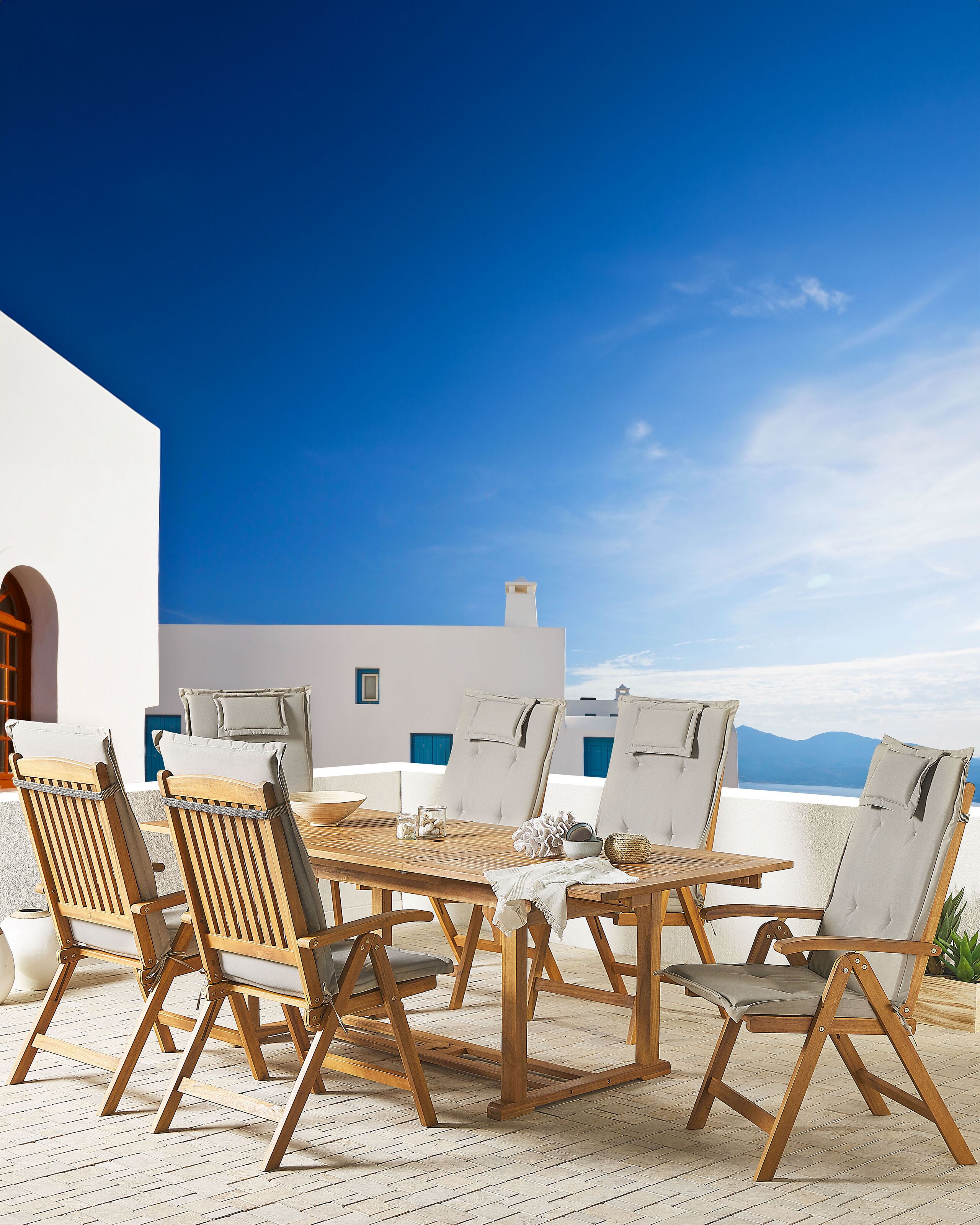 Puutarhatuolisetti pehmusteilla 6 kpl JAVA akaasia Rusk...