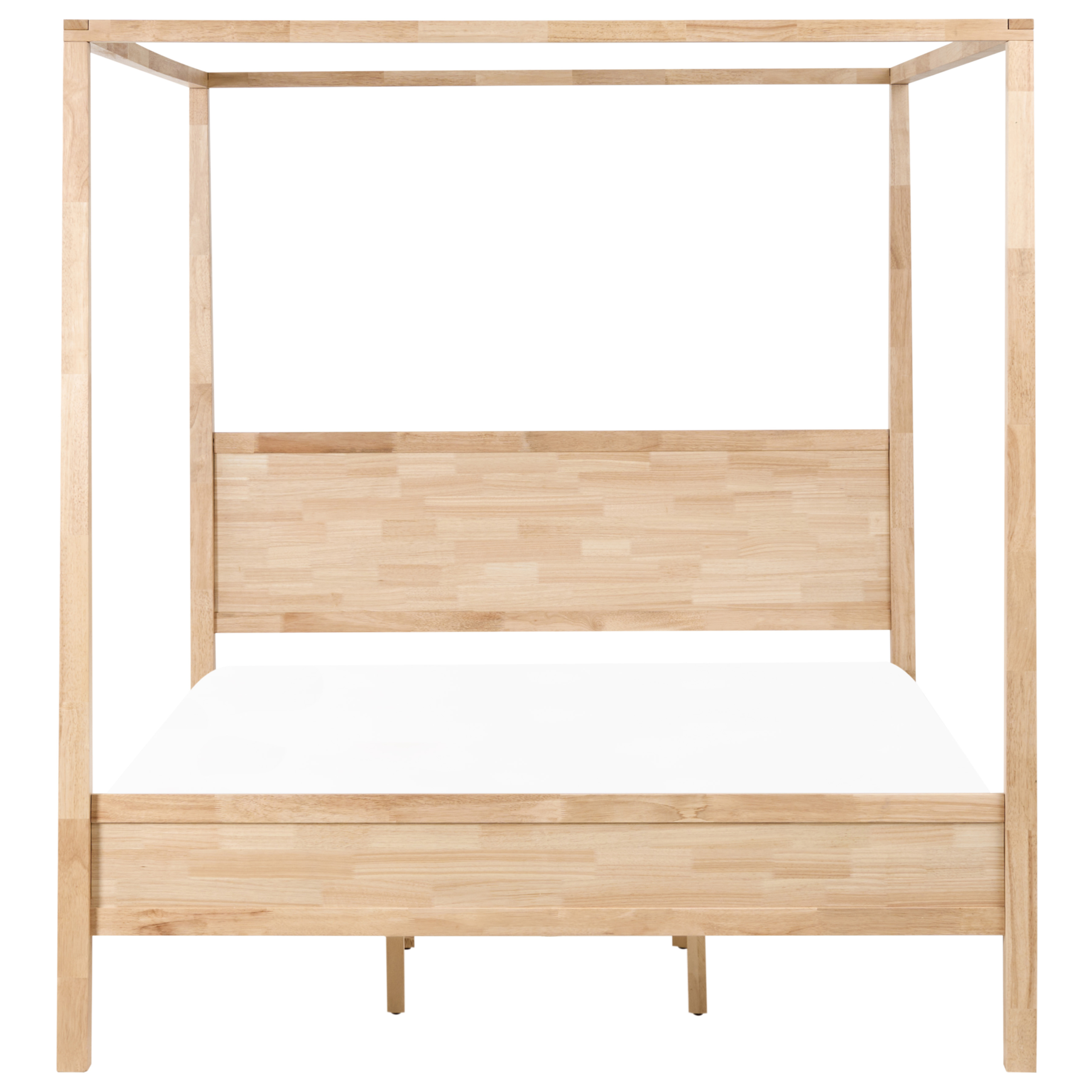 Elegantti massiivipuinen katossänky. Tämä massiivipuusta valmistettu pylvässänky tuo makuuhuoneeseen luonnollista eleganssia ja ajatonta viehätystä. Minimalistinen muotoilu korostaa puhtaita, moderneja linjoja, luoden rauhallisen ja ilmavan tunnelman. Kumipuun vaalea sävy sopii kauniisti yhteen pehmeiden tekstiilien kanssa, mikä mahdollistaa loputtomat stailausmahdollisuudet. Sänky on täydellinen niille, jotka arvostavat hienostunutta yksinkertaisuutta ja kestävää laatua.