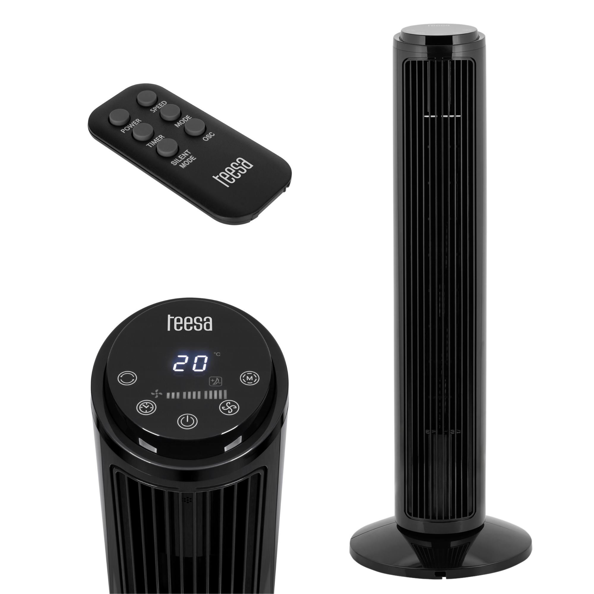Pylvästuuletin, lattiatuuletin, hiljainen ajastin, kaukosäädin, Teesa