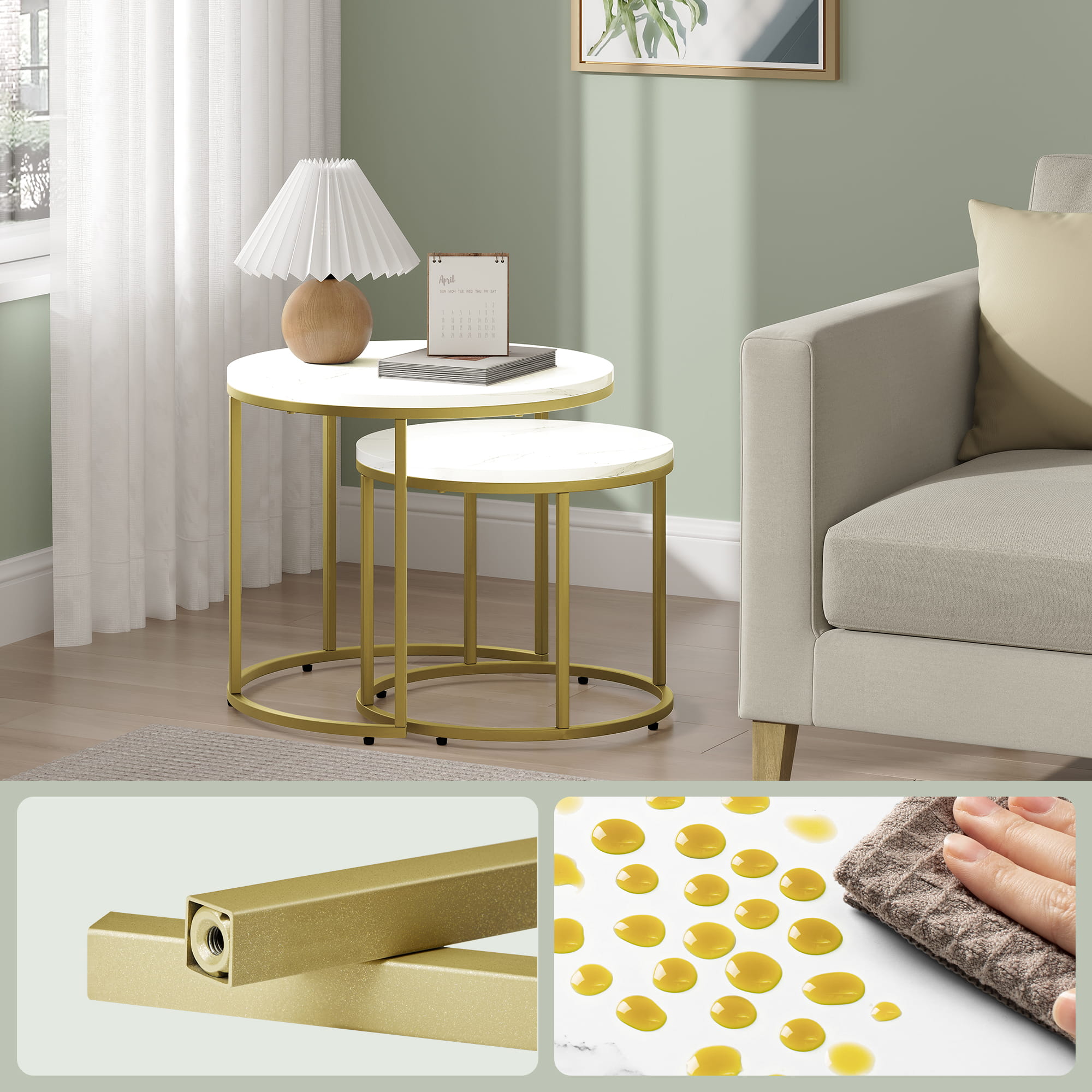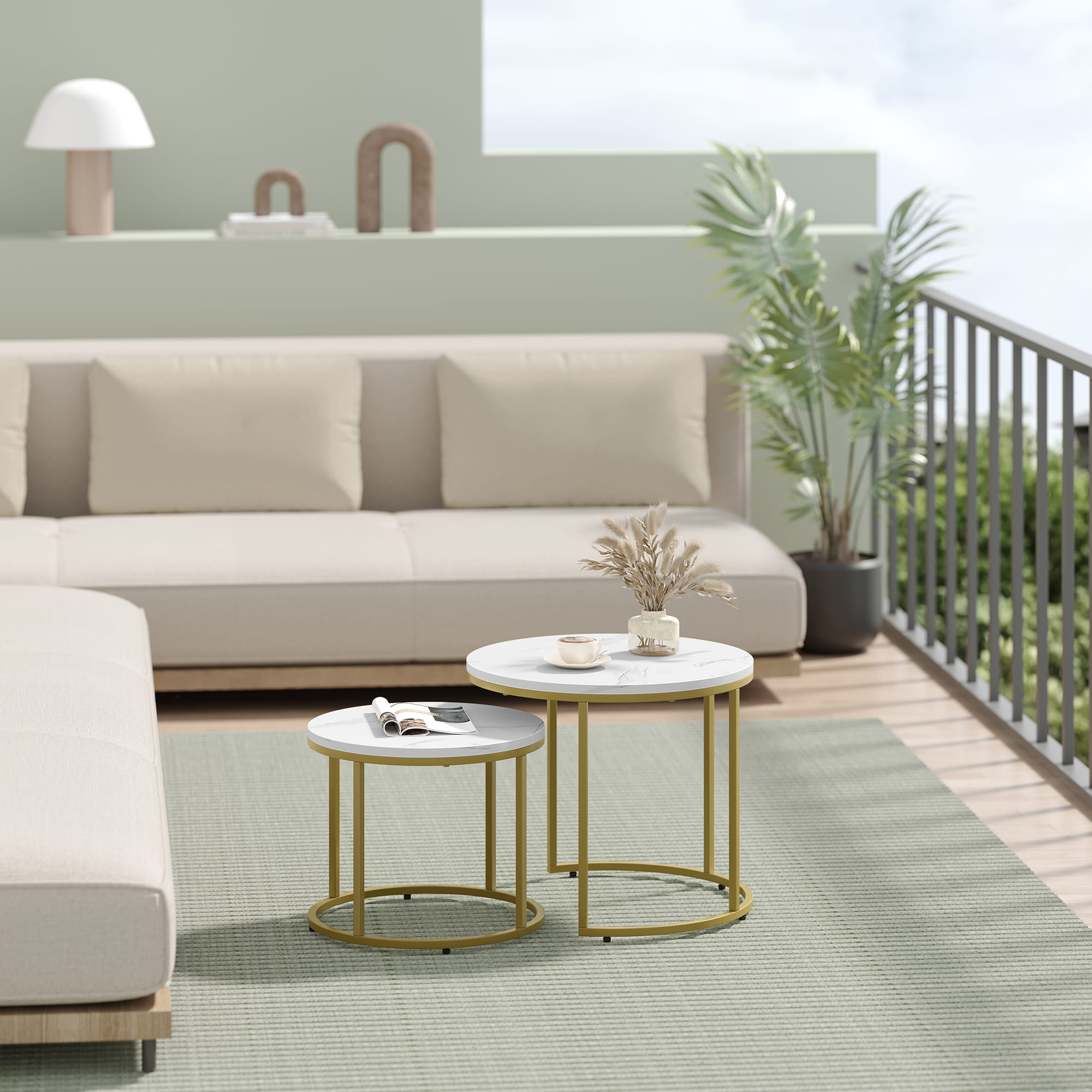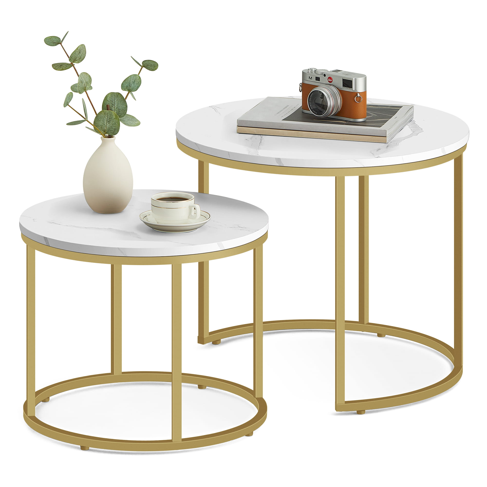 Pyöreä sohvapöytä, 2 osaa - marmori / kultaiset jalat