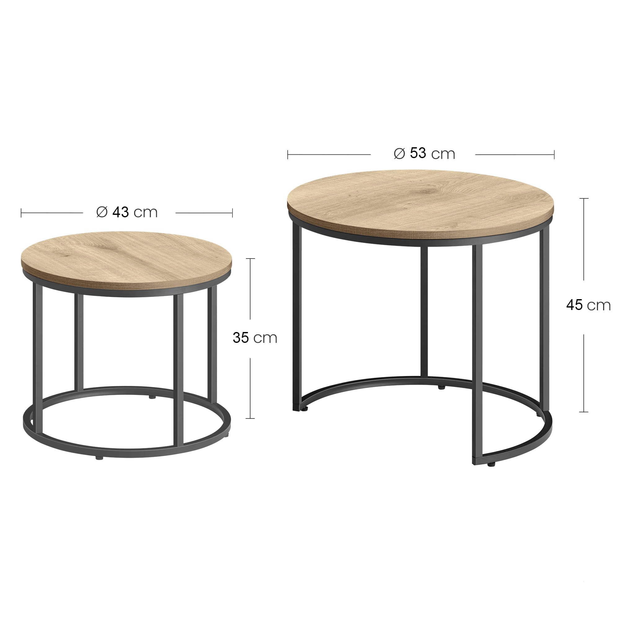Pyöreä sohvapöytä, 2 osaa - Sonoma-tammi / mustat jalat