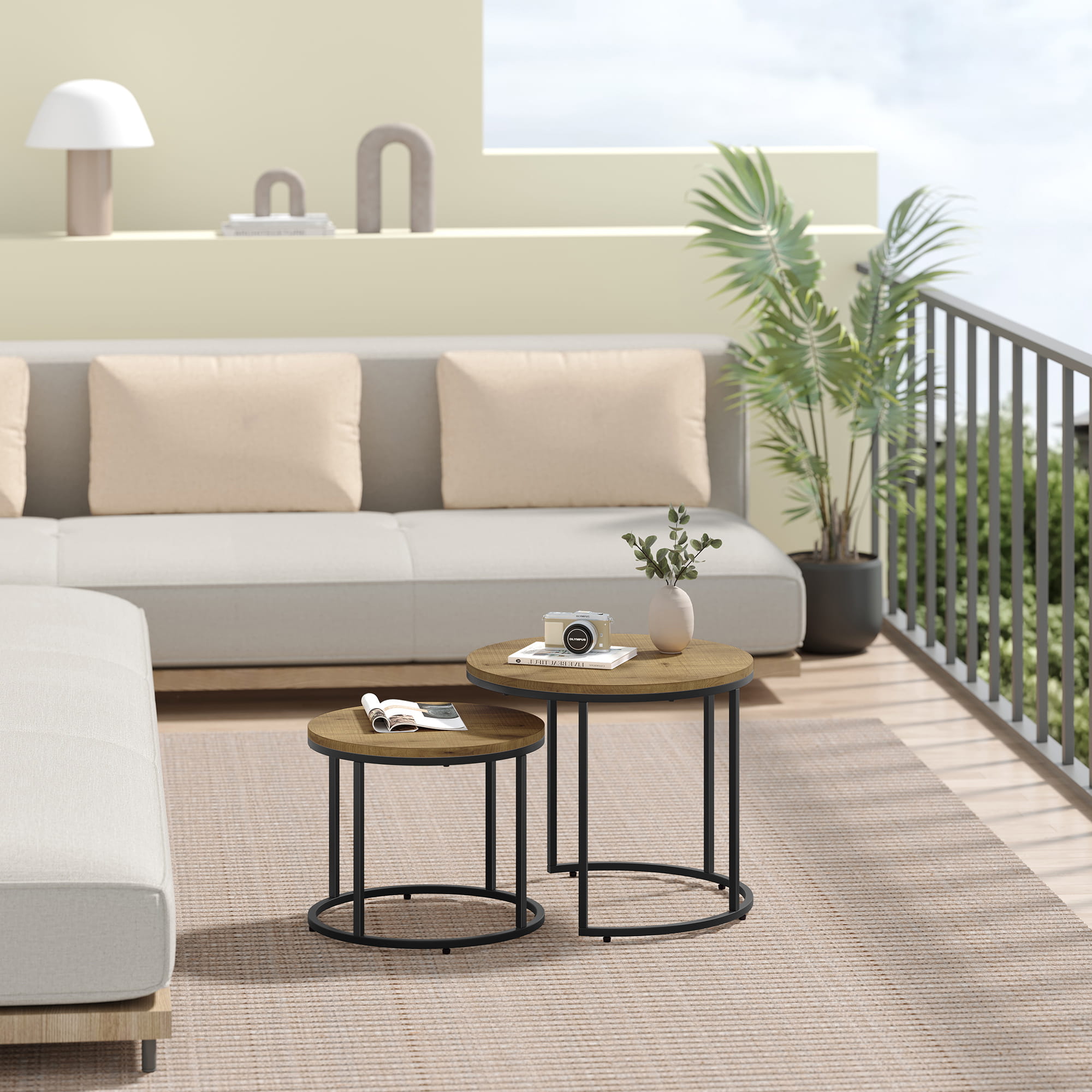 Pyöreä sohvapöytä, 2 osaa - tammi / mustat jalat
