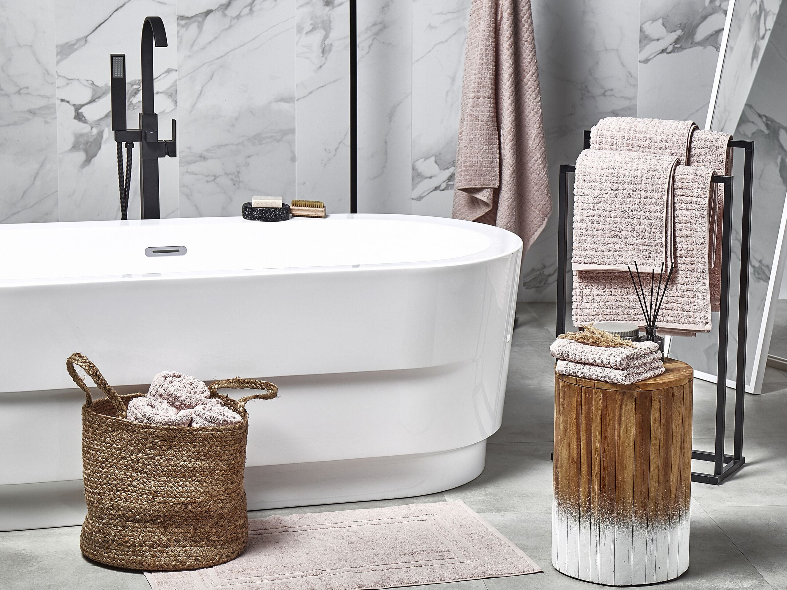 Konepestävä 11 pyyhkeen setti. Tämä erittäin pehmeä ja pörröinen 11 pyyhkeen setti on loistava valinta jokaiseen kylpyhuoneeseen. Se sisältää kaiken, mitä tarvitset: kaksi käsipyyhettä, kaksi vieraspyyhettä, neljä kylpypyyhettä, kaksi isoa kylpypyyhettä ja kylpymaton. Vohvelikuvioitu tekstuuri tarjoaa miellyttävän tuntuman ja kauniin ilmeen. Pyyhkeet on valmistettu pitkäkuituisesta puuvillasta, minkä ansiosta ne ovat pehmeitä iholle ja sopivat täydellisesti jokapäiväiseen käyttöön. Matalakierteiset kuidut takaavat korkean imukyvyn ja nopean kuivumisen.