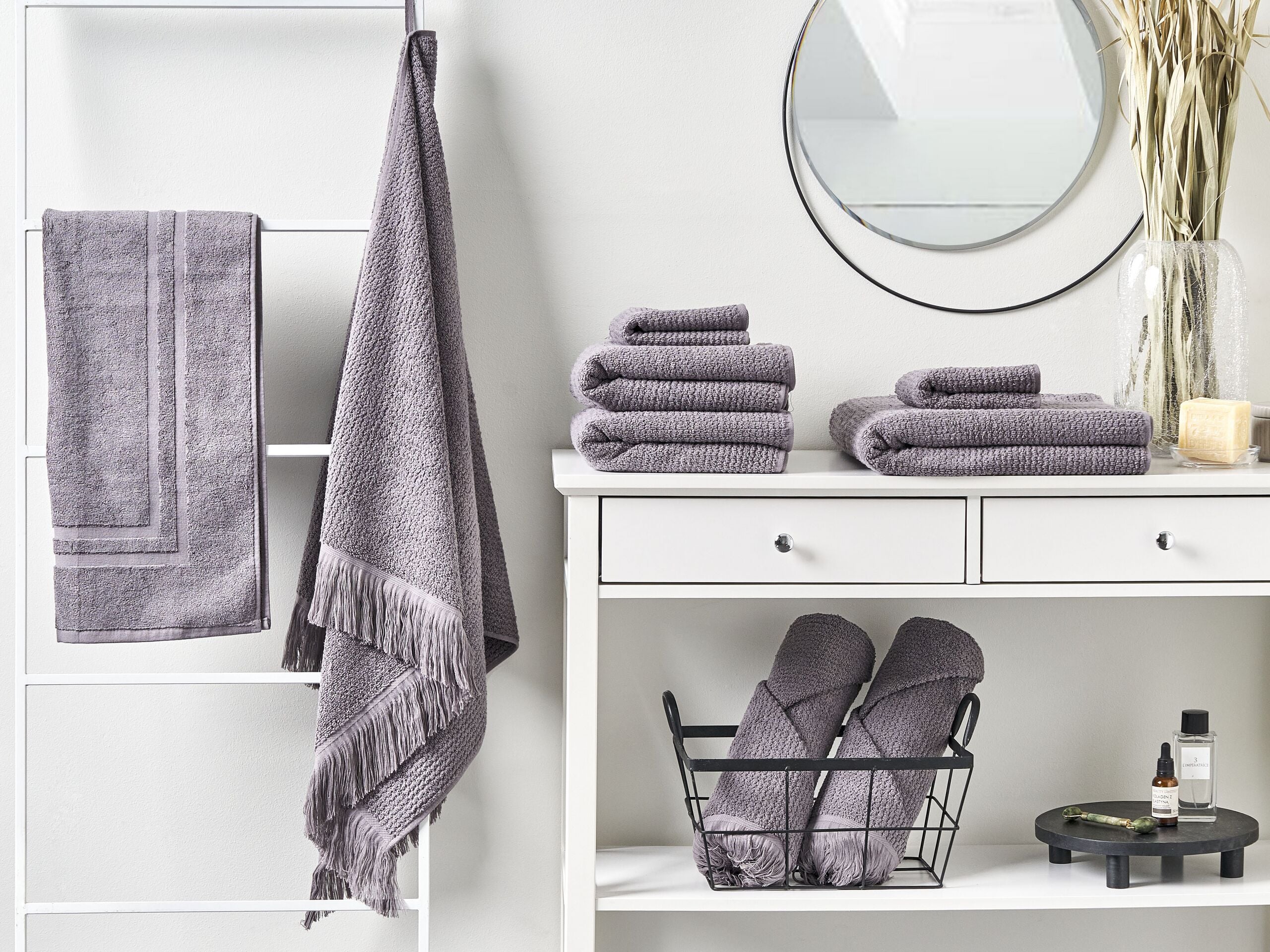 Ylellinen pyyhesetti hapsuilla. Tunne olosi hemmotelluksi omassa kotikylpylässäsi ja kietaise itsesi rentouttavan kylvyn tai nopean suihkun jälkeen laadukkaaseen pyyhkeeseen. Puuvillasta ja kierrätetystä polyesteristä valmistettu pyyhesetti tuo ripauksen luksusta ja mukavuutta jokaiseen kylpyhuoneeseen. Froteerakenne on pehmeä ihoa vasten ja imee vettä tehokkaasti. Pyyhkeiden ainutlaatuinen tekstuuri ja sivujen koristeelliset hapsut tuovat tilaan boho-tunnelmaa. Setti sisältää kylpymaton, kaksi vieras- ja käsipyyhettä sekä neljä kylpypyyhettä.