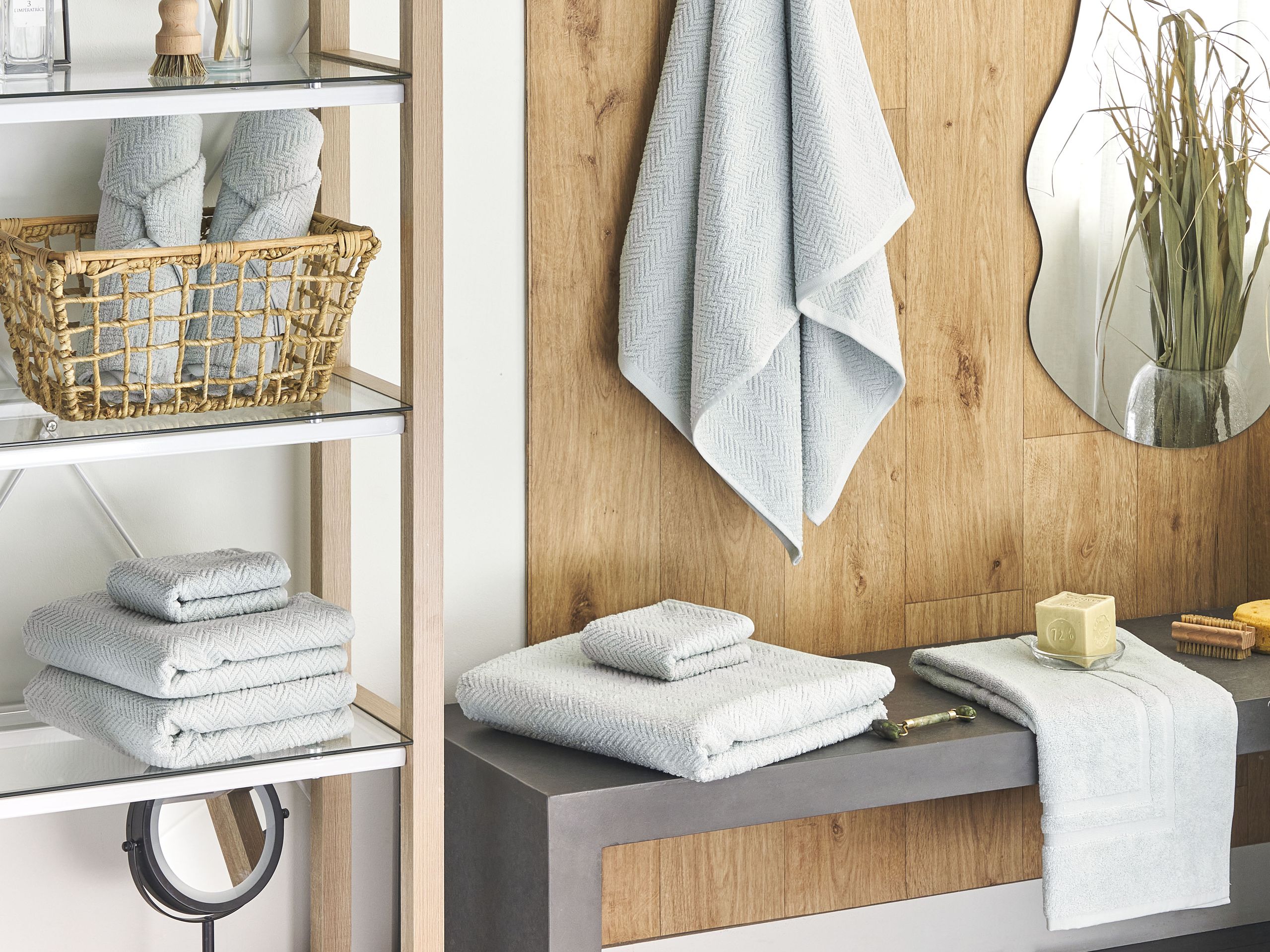Ylellinen froteepyyhesetti. Hemmottele itseäsi ja vieraitasi tällä uskomattoman pehmeällä froteepyyhesetillä. Pyyhe on 100% puuvillaa, jonka ansiosta se imee vettä hyvin ja kuivuu nopeasti. Frotee on erittäin pehmeä materiaali ja pysyy myös mukavan tuntuisena usean pesukerran jälkeen. Pyyhkeissä on kaunis siksak kuvio ja reunat on viimeistelty siististi elegantin ilmeen takaamiseksi.