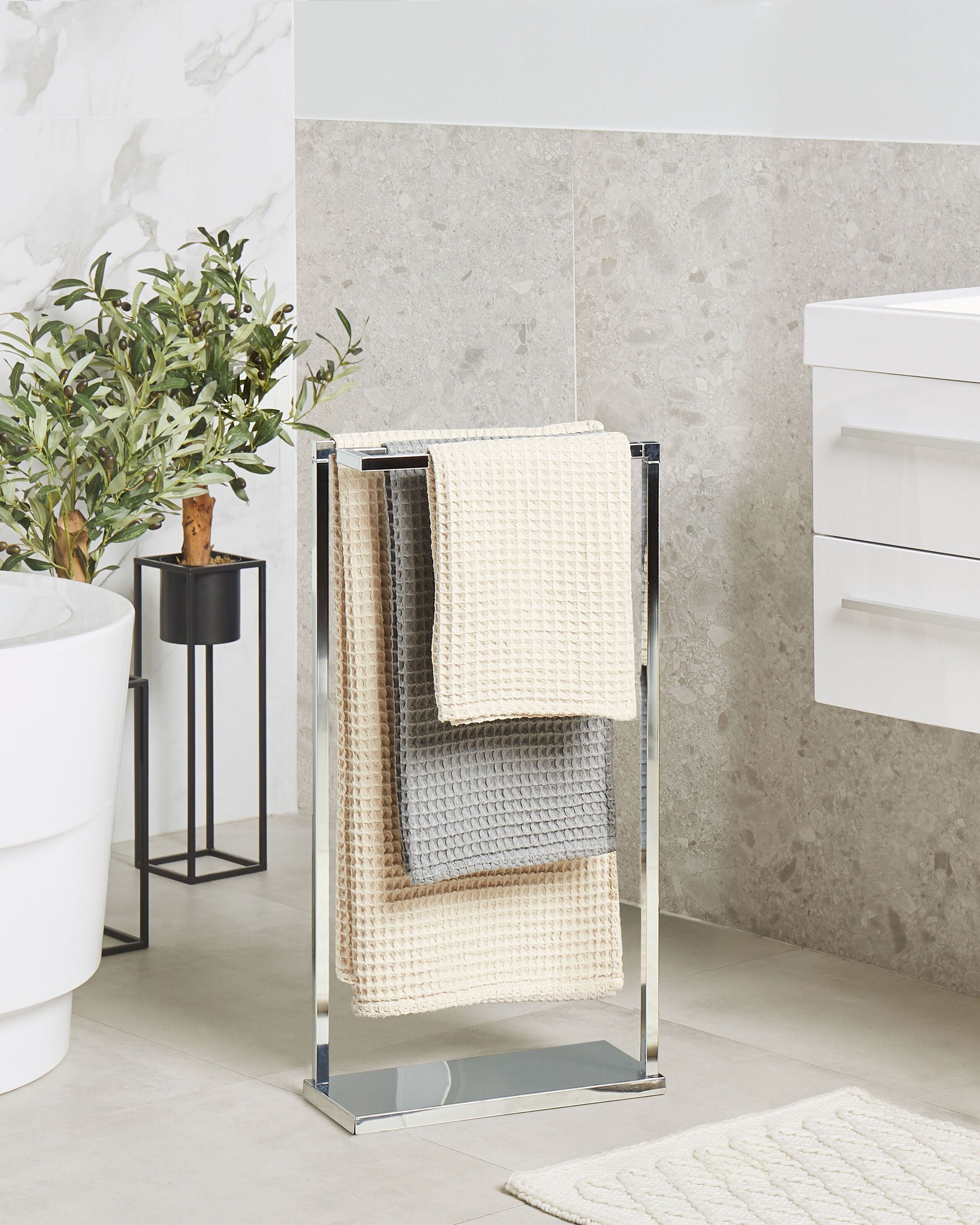 Ominaisuudet: Sopii erikokoisille pyyhkeille, Moderni muotoilu, Sopii mihin tahansa sisustukseen, Korkealaatuinen, Tukeva ja kestävä runko