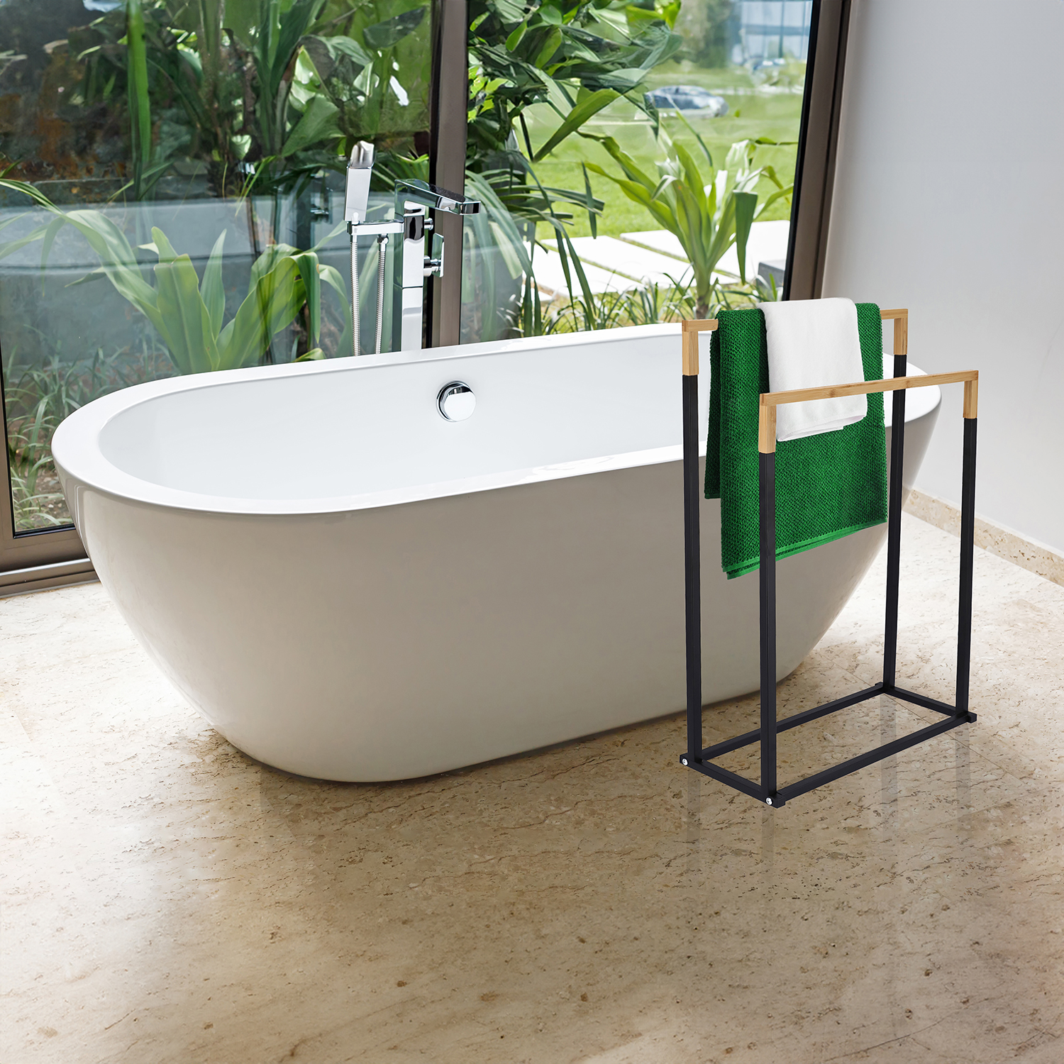 Pyyheteline musta-ruskea pyyheteline on toimiva ja tyylikäs kylpyhuonekaluste. Reikien poraamisesta seiniin ei tarvitse huolehtia. Henkari on vakaa, joten sitä on helppo siirtää mihin tahansa kylpyhuoneessa. Siinä on kaksi pystysuoraa vartta, joihin voit ripustaa pyyhkeitä. Täydellinen ratkaisu niille, jotka arvostavat järjestystä ja tyyliä kylpyhuoneessaan. Sopii erinomaisesti sekä pieniin että suuriin kylpyhuoneisiin.