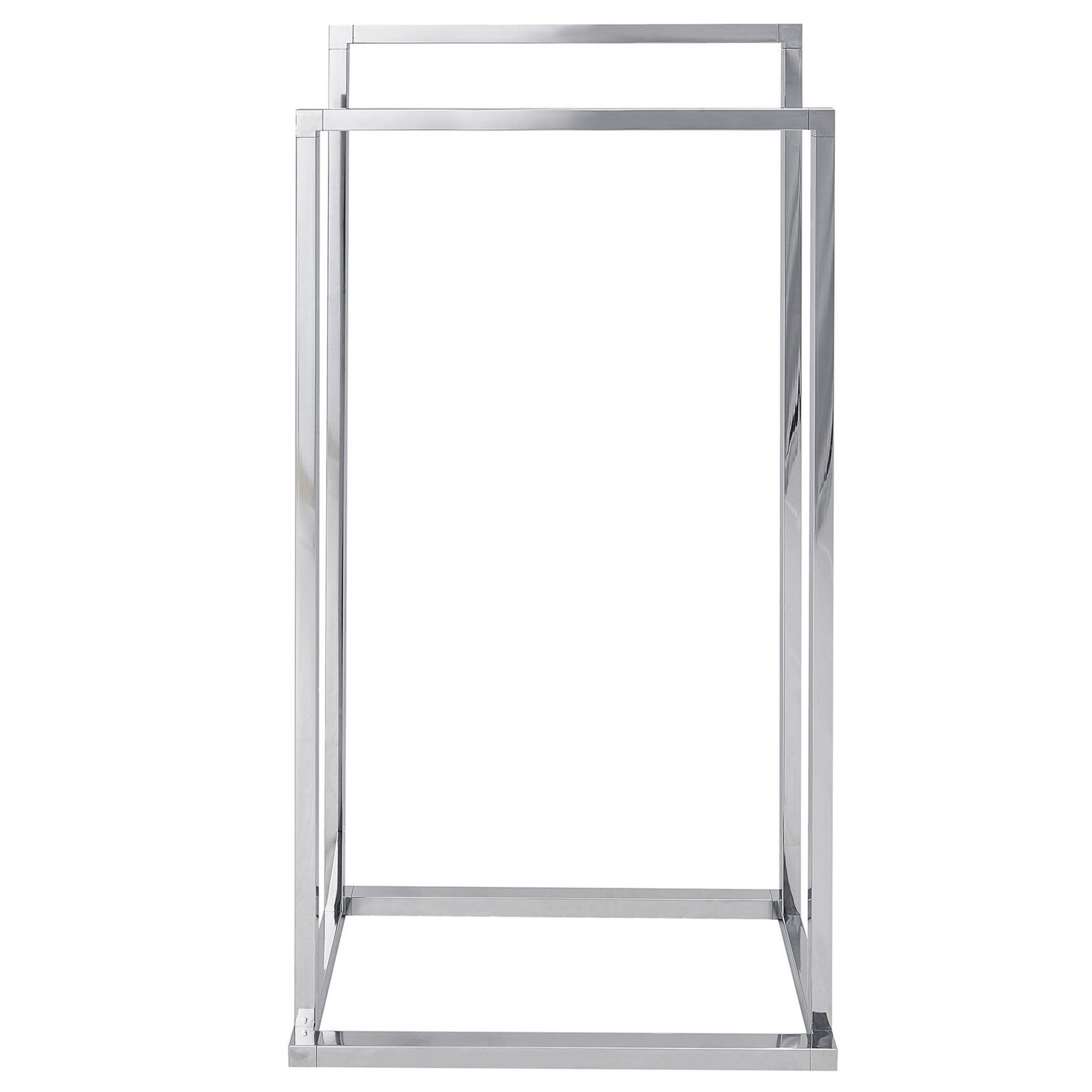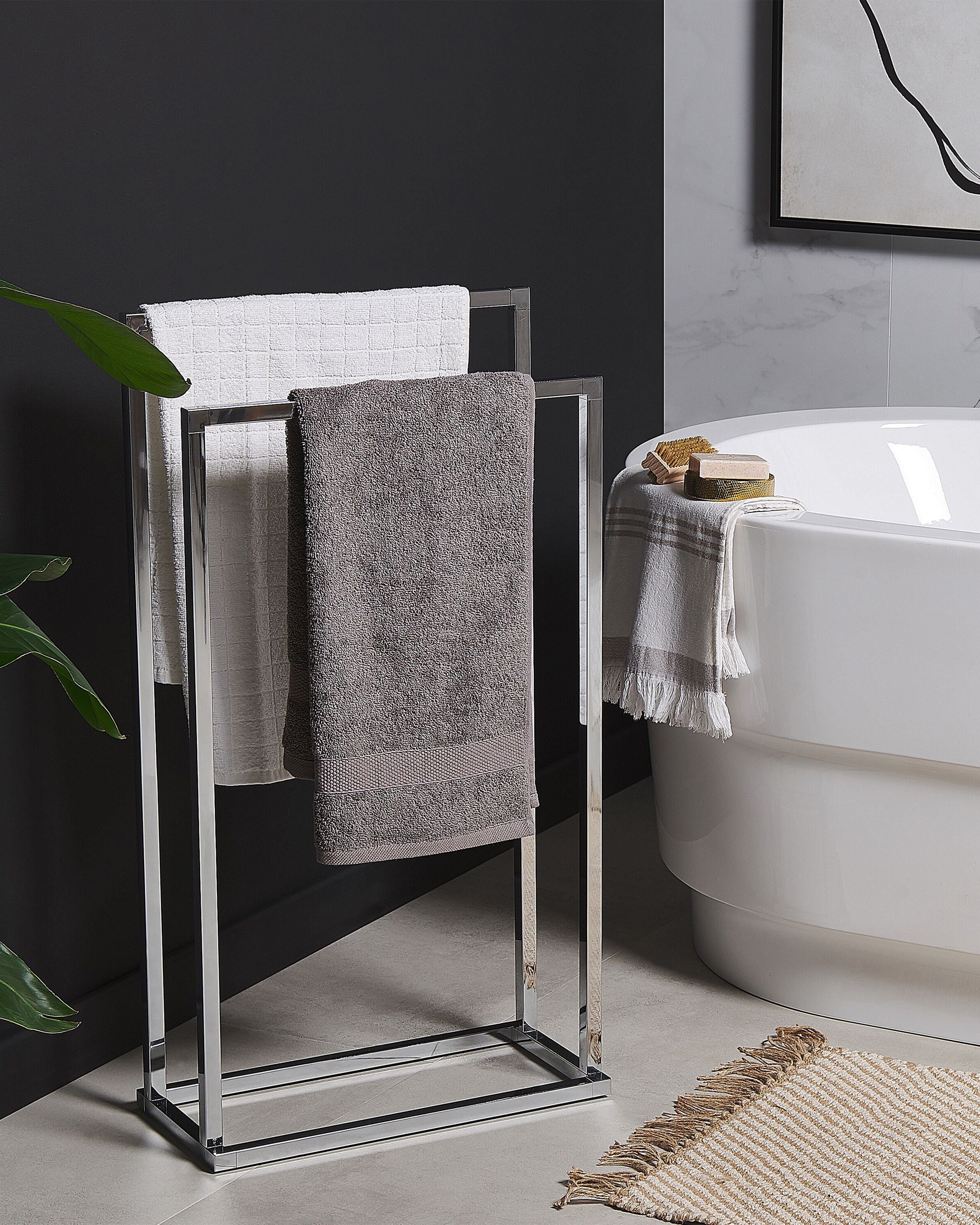 Tyylikäs pyyheteline. Tämä pyyheteline on täydellinen lisä kylpyhuoneeseen, helpottaen arjen toimia ja tarjoten kätevän laskupaikan sekä kuiville että märille pyyhkeille. Teline on valmistettu kestävästä ja helppohoitoisesta teräksestä, ja sen kromattu viimeistely tekee siitä huomiota herättävän lisän mihin tahansa moderniin sisustukseen. Kahdelle eri korkeudelle sijoitetut tangot tekevät pyyhetelineestä sopivan eri kokoisille pyyhkeille.