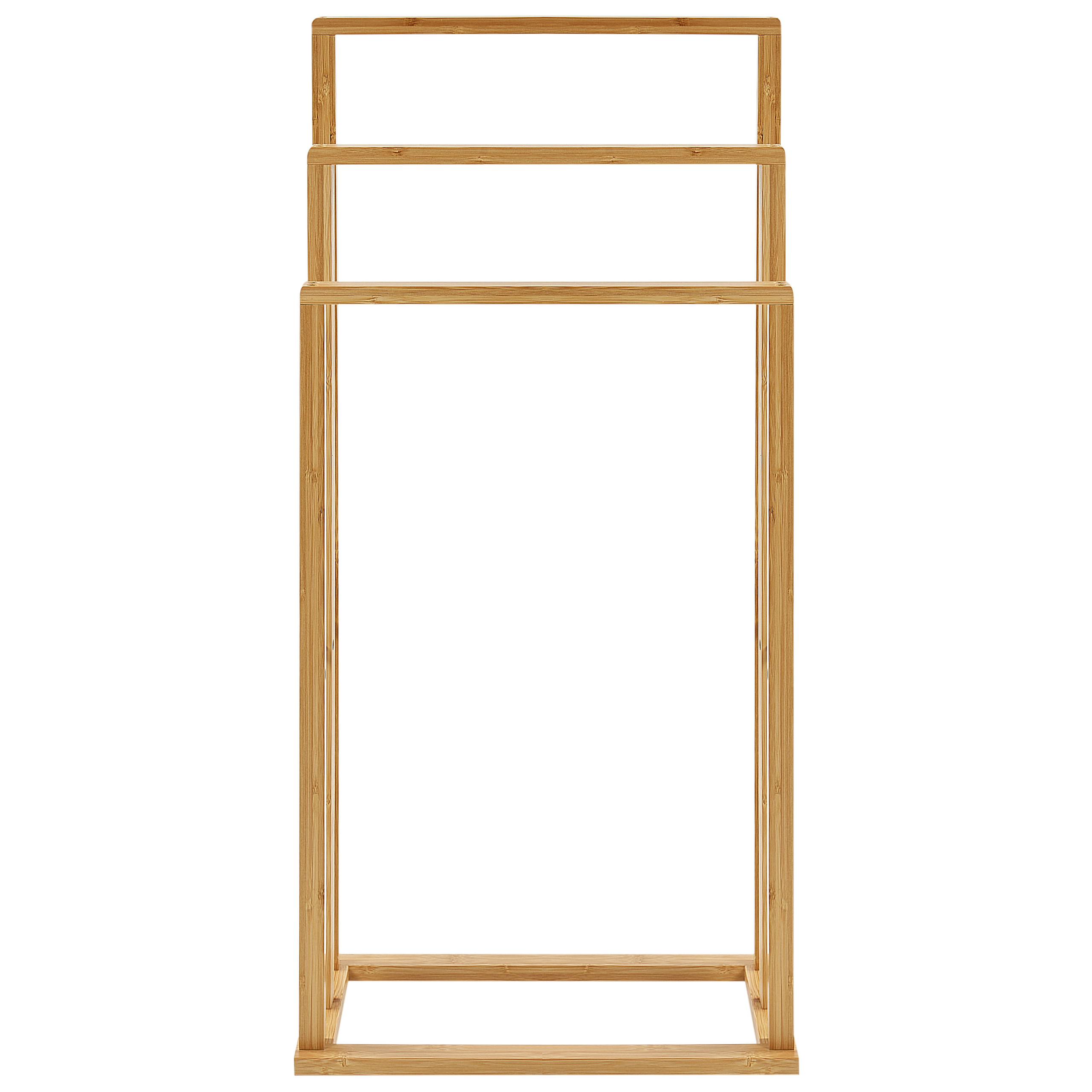 Minimalistinen pyyhepidike. Tämä minimalistisesti muotoiltu vapaasti seisova pyyheteline omaa kolme eri korkeudelle asetettua vaakasuoraa tankoa. Tangot tarjoavat runsaasti tilaa erikokoisten pyyhkeiden ripustamiseen ja kuivaamiseen. Kestävästä bambusta valmistetussa telineessä on luonnollinen viimeistely, joka tuo lämpöä kylpyhuoneen sisustukseen. Pyyheteline on kevyt mutta tukeva, joten se on sekä toimiva että visuaalisesti houkutteleva.