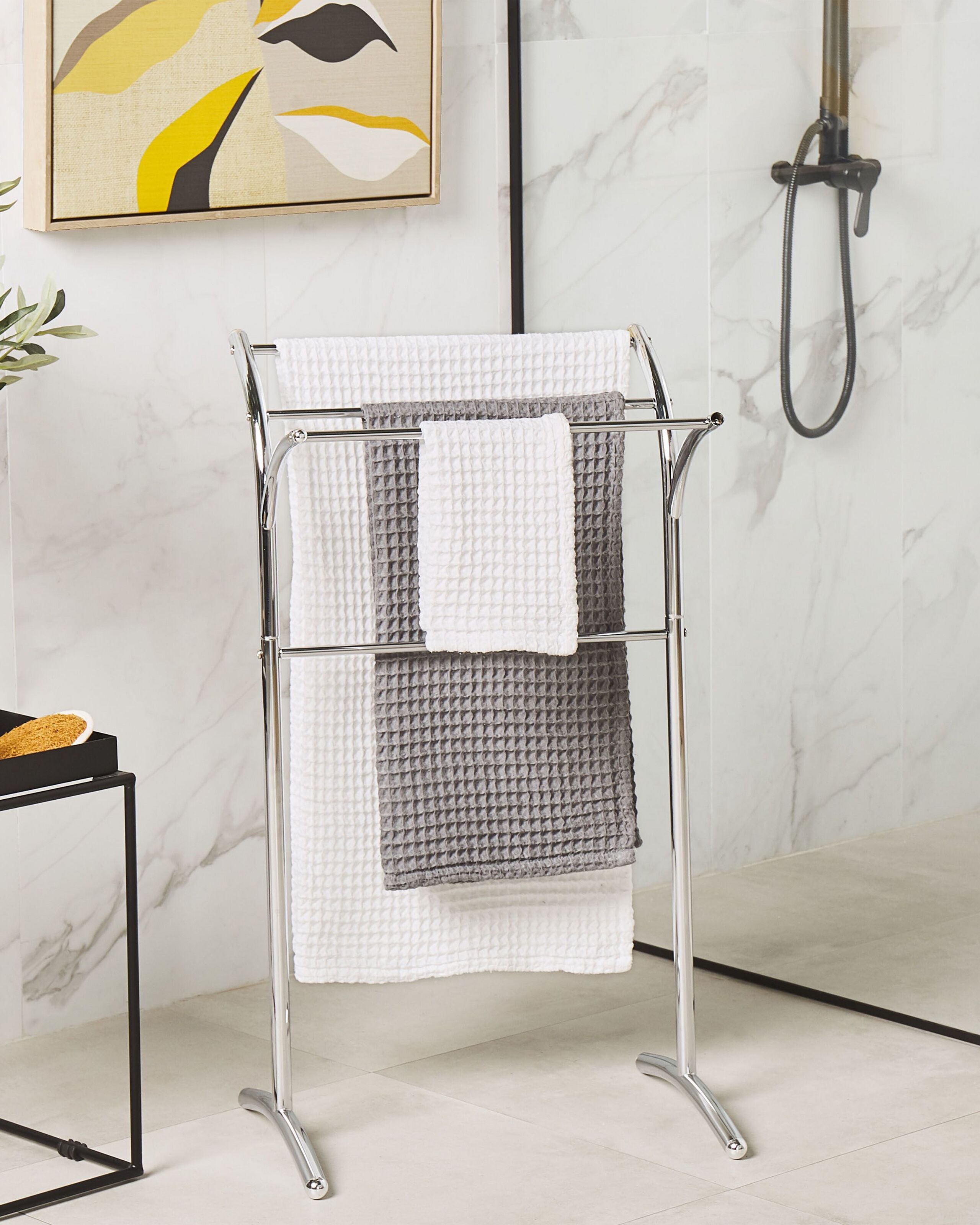 Ominaisuudet: Sopii erikokoisille pyyhkeille, Ajaton muotoilu, Sopii mihin tahansa sisustukseen, Korkealaatuinen, Kevyt mutta kestävä materiaali