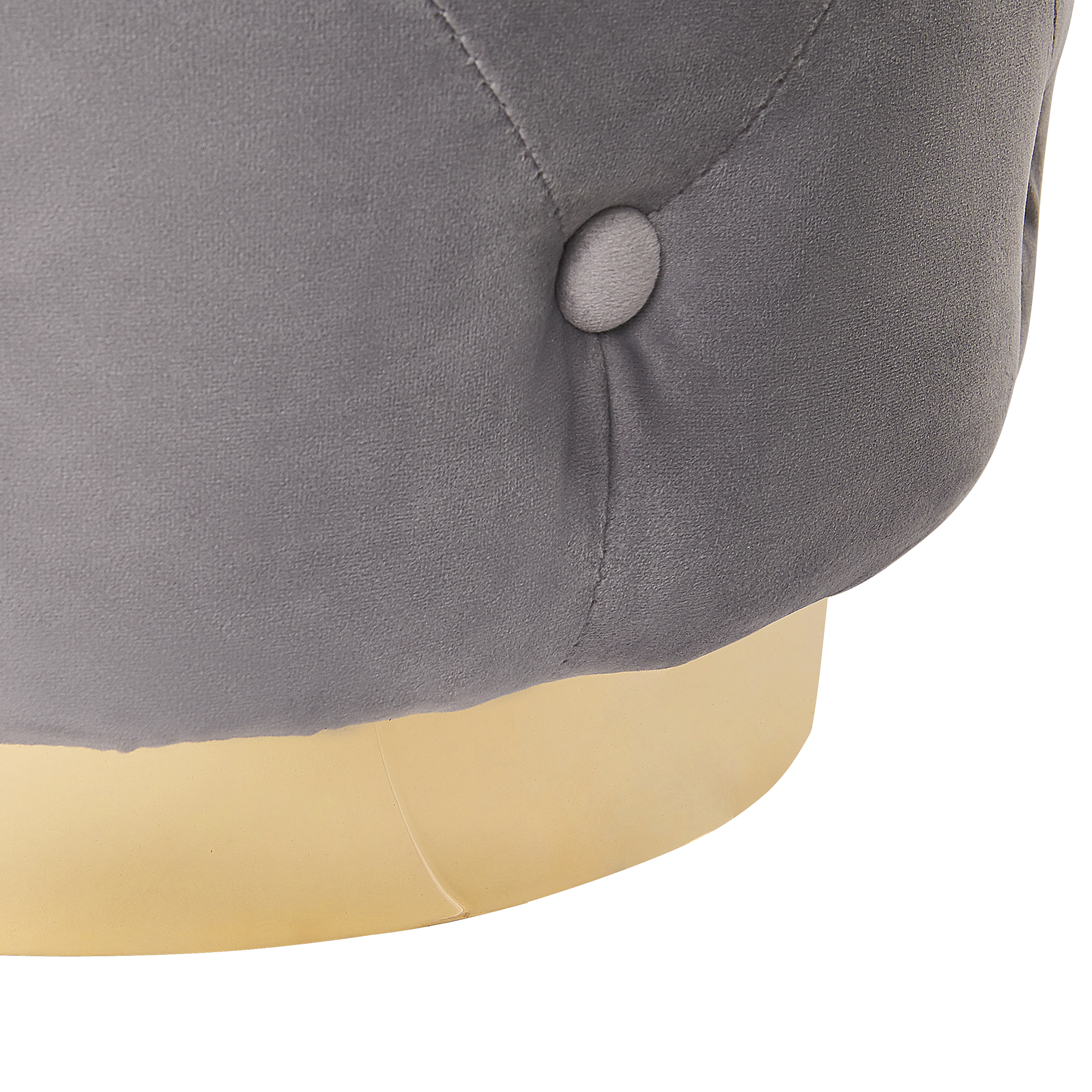 Kaunis nappikoristeltu rahi. Tämä elegantti rahi kohottaa mitä tahansa modernia tai perinteistä olohuonetta, makuuhuonetta tai eteistä. Lempeä, hillitty samettiverhoilu muuttaa sävyään hienovaraisesti katselukulmasta ja valaistuksesta riippuen, mikä tuo sisustukseen lämpöä ja harmoniaa, luoden samalla dynaamisen ja ikityylikkään ilmeen. Verhoilu on viimeistelty kauniilla tikkauksella ja koristenapeilla, ja vakaa, kullanvärinen metallijalusta lisää lumoavaa hohtoa. Rahi sopii erinomaisesti kampauspöydän ääreen, nojatuolin jalkatueksi tai koristeelliseksi ja ylelliseksi yksityiskohdaksi.