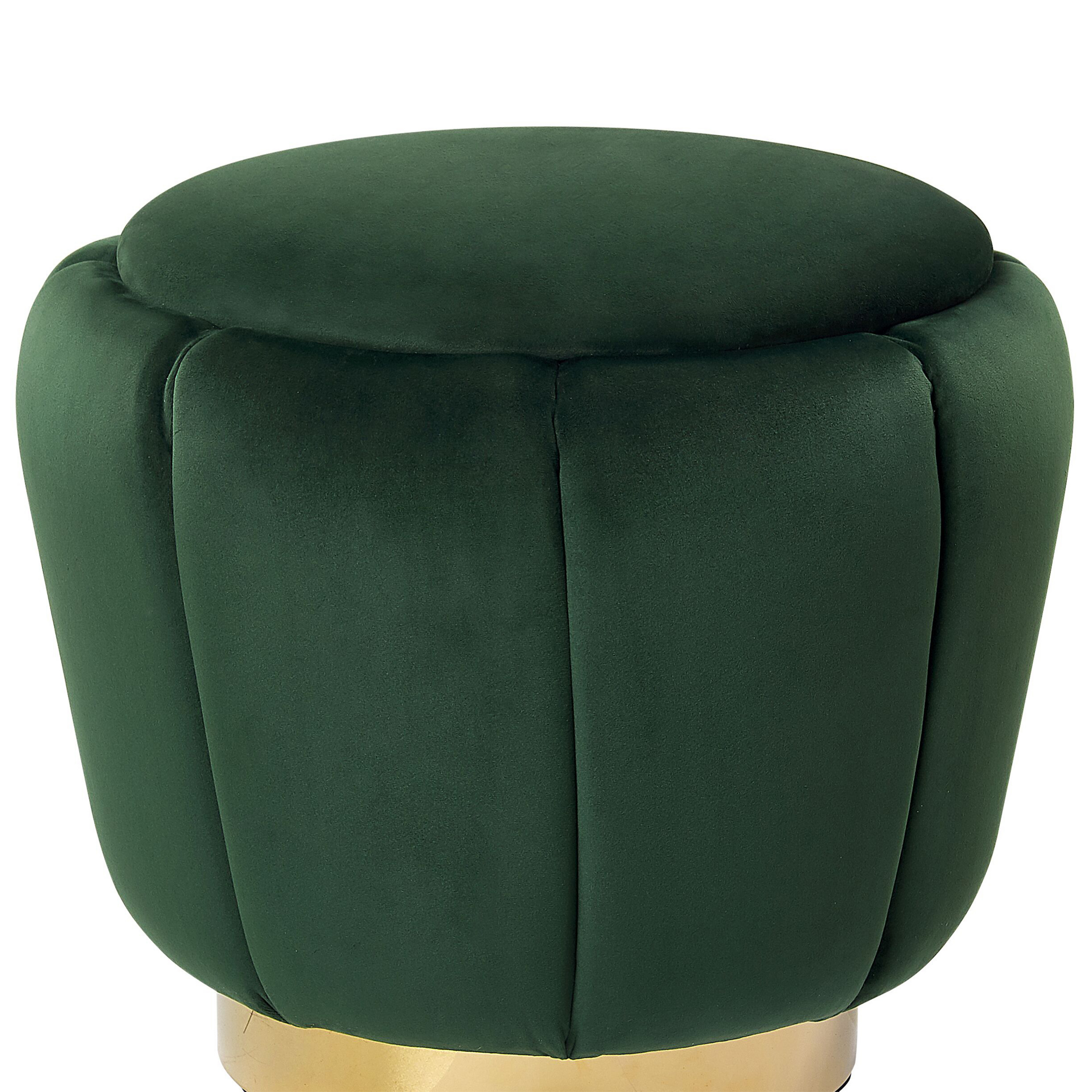 Koristeellinen pyöreä rahi. Lisää olohuoneeseen tai makuuhuoneeseen glamour-tunnelmaa tällä pyöreällä rahilla, joka on viimeistelty koristeellisella tikkauksella. Laadukas tummanvihreä samettiverhoilu ja kiiltävä kullanvärinen metallijalusta eivät vain kohota mitä tahansa modernia tai retrotyylistä sisustusta, vaan tuovat siihen myös tyylikästä ilmettä. Rahi on monikäyttöinen – voit käyttää sitä mukavana jalkatukena, jakkarana kampauspöydän äärellä tai ylimääräisenä istuimena.