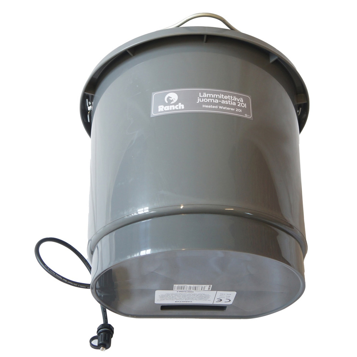 20L lämmitettävä vesiastia, jota voidaan käyttää ulkona tai lämmittämättömissä tiloissa kylminä vuodenaikana. Valmistettu elintarvikehyväksytystä muovista, joka on vahva ja eristävä. Vesiastia kestää tyynissä olosuhteissa -20 astetta ja pitää sitten veden lämpötilan 10-15 asteessa. Sisäänrakennettu termostaatti, joka käynnistyy, kun ympäristön lämpötila on noin 3 astetta. Vesiastia seisoo tukevasti muotonsa ansiosta. Tilavuus 20L ja 2L asteikko.