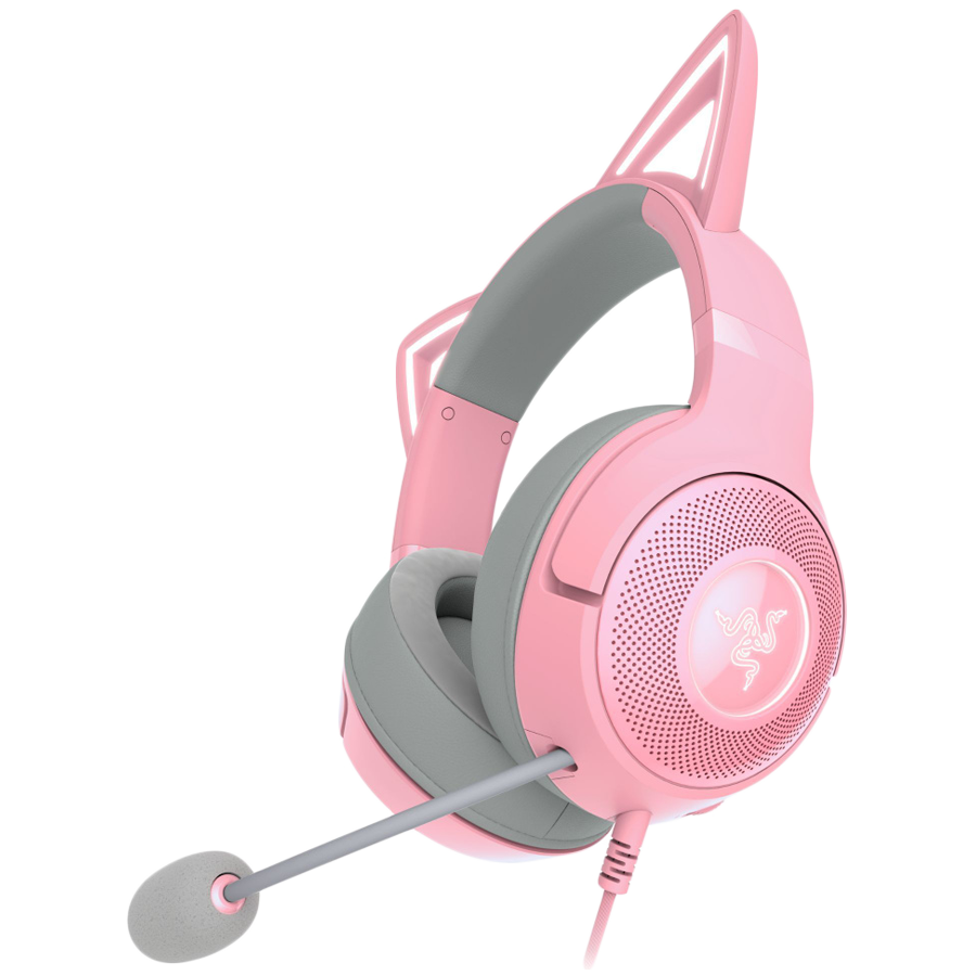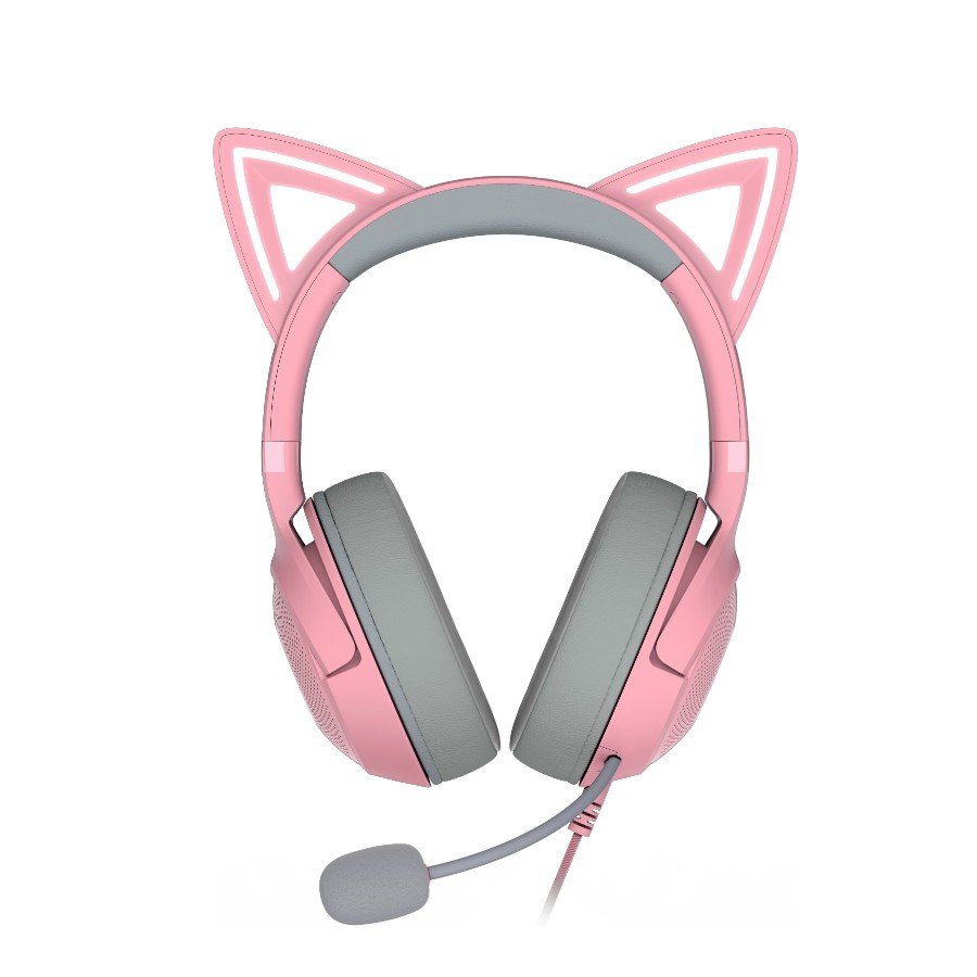 Razer Kraken Kitty V2 Quartz – Langalliset pelikuulokkeet striimaajille, joissa on kiinteät kissankorvat, striimiin reagoiva Razer Chroma™ RGB -valaistus, HyperClear-mikrofoni ja 7.1-tilaääni.