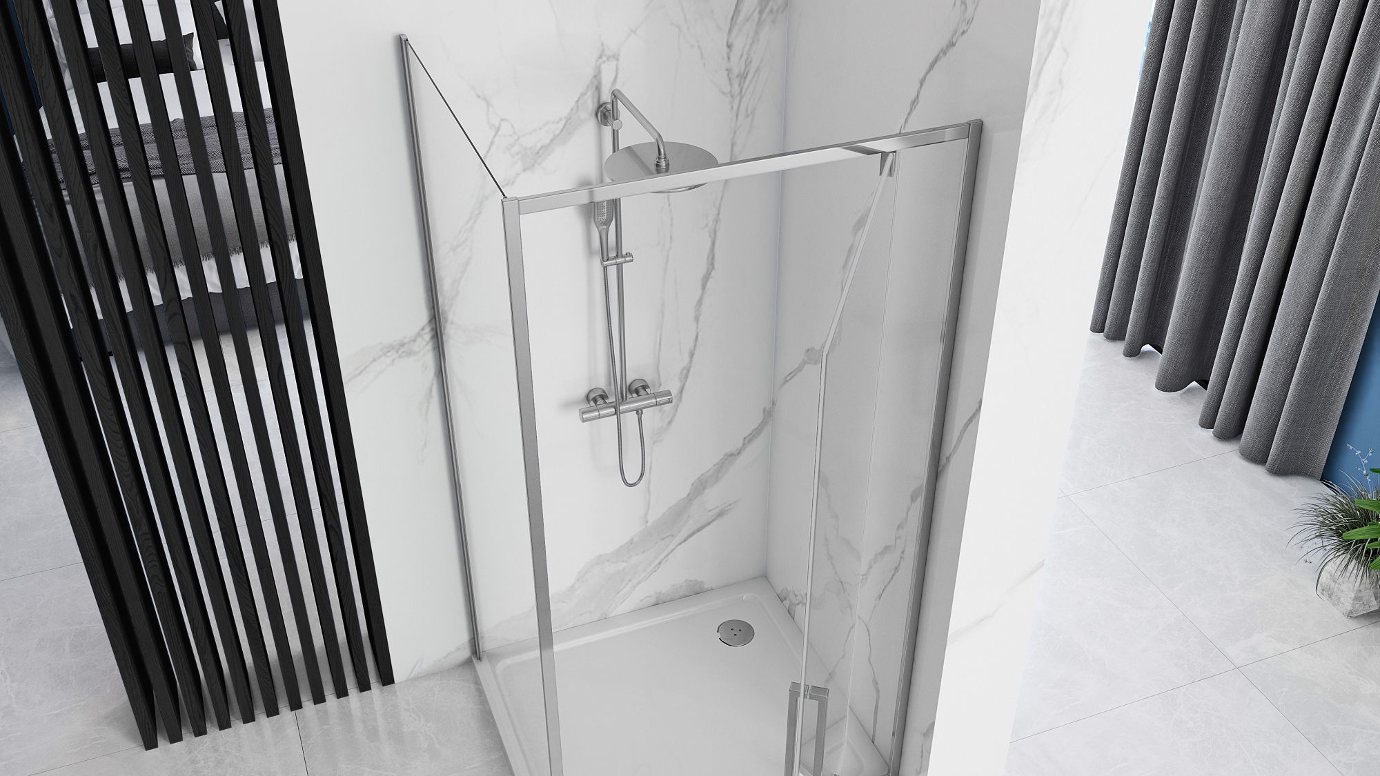 REA Kulmasuihkukaappi RAPID SWING 100X90 kromi, 100X90X195CM
