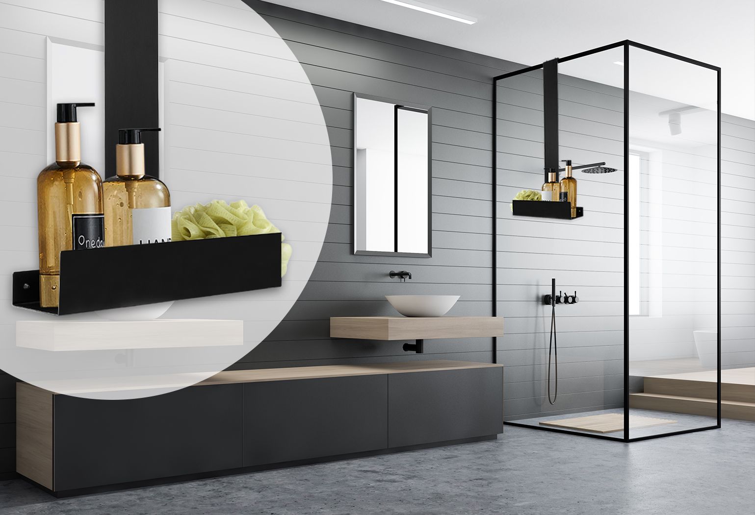 Tämä moderni ja kestävä metallihylly ripustetaan suihkukaapin yläosaan. Se sopii täydellisesti pesuaineiden, kosmetiikan ja muiden pientarvikkeiden säilyttämiseen. Hylly auttaa pitämään kylpyhuoneen siistinä ja tuo samalla tyylikkään yksityiskohdan sisustukseen.