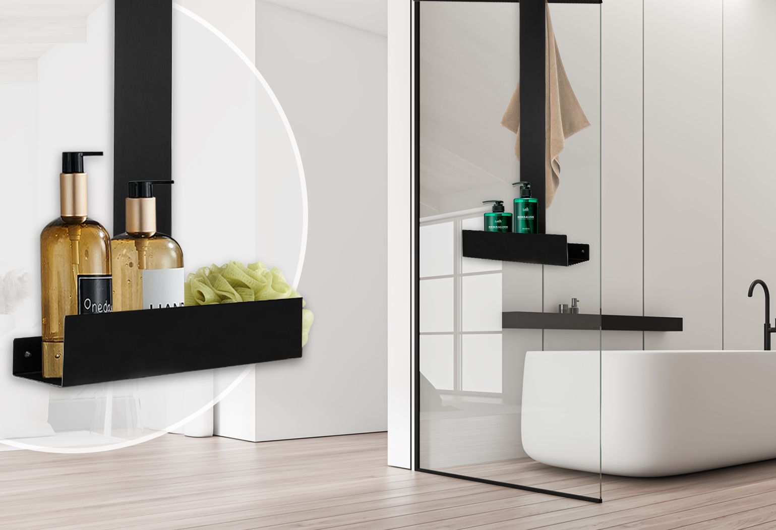 REA kylpyhuonehylly TORI musta, 13X40X75, 5CM