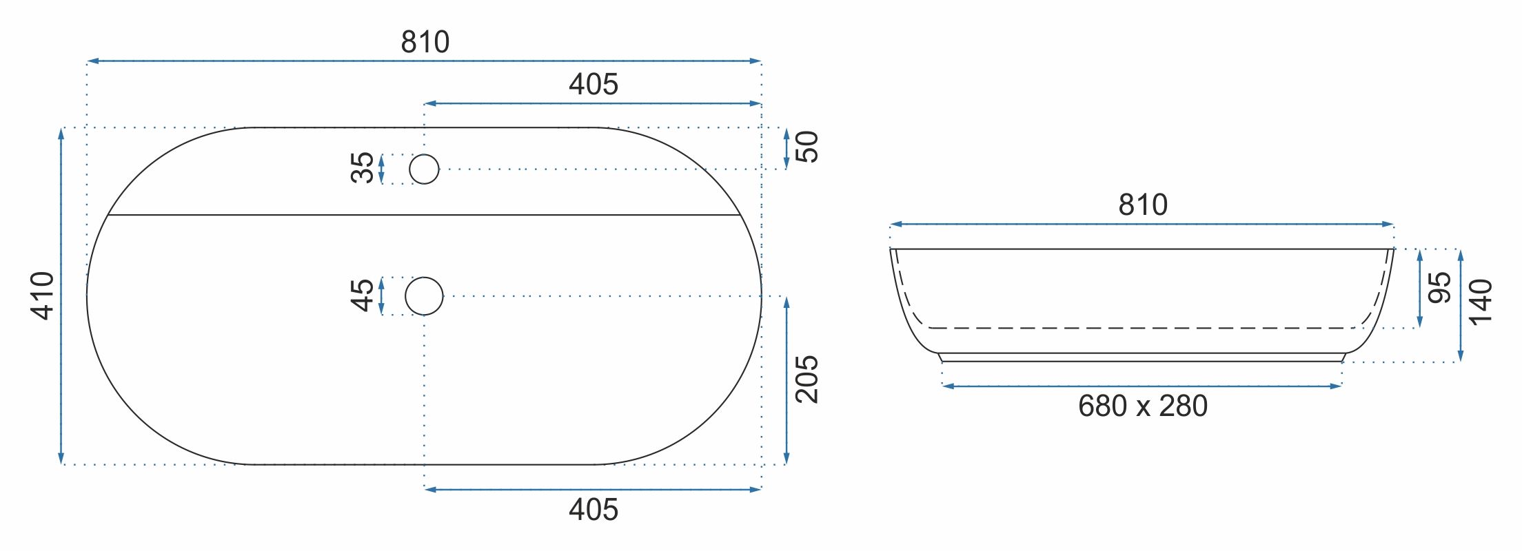 Mielenkiintoisen elliptisen muotoinen Rea Aura -pesuallas täydentää täydellisesti mitä tahansa modernia sisustusta. Se on suunniteltu asennettavaksi työtasolle tai kaappiin. Hana ja pohjaventtiili eivät sisälly toimitukseen.