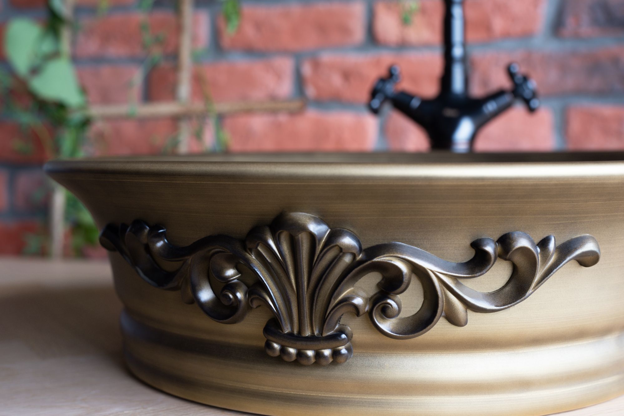 Maalaistyylinen *Betty*-tasoinen pesuallas ei ole vain käytännöllinen elementti kylpyhuoneessa, vaan myös ainutlaatuinen koriste-elementti. Harjattu pinta antaa sille aidon, ikääntyneen ilmeen, joka sopii täydellisesti erilaisiin kylpyhuonejärjestelyihin. Hana ja pohjaventtiili eivät sisälly toimitukseen.