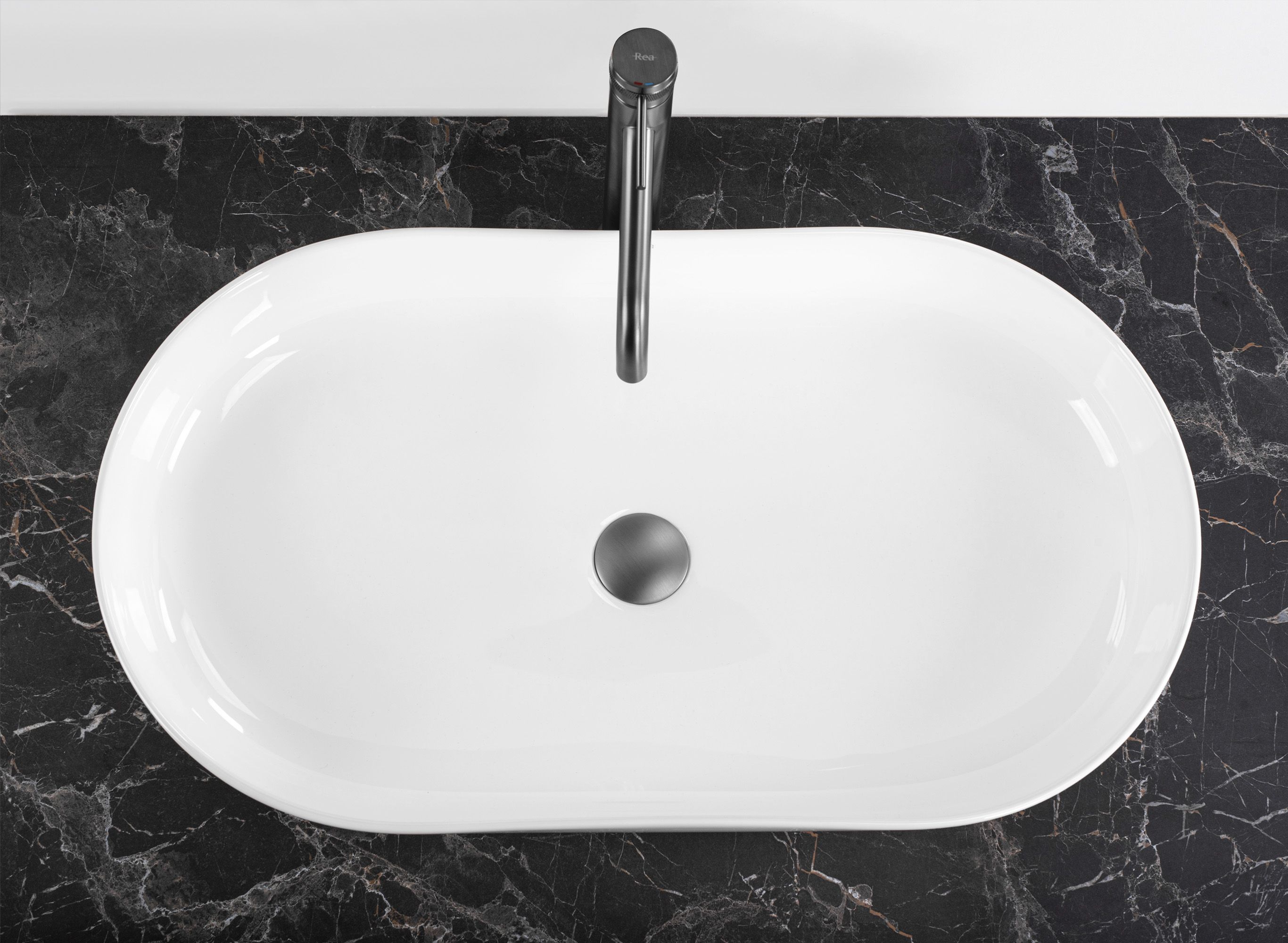 Cleo white Rea keraaminen pesuallas on klassikko mielenkiintoisessa versiossa. Soikea muoto tekee siitä ohuen, mikä tuo järjestystä ja harmoniaa kylpyhuoneeseesi. Hana ja pohjaventtiili eivät sisälly toimitukseen.