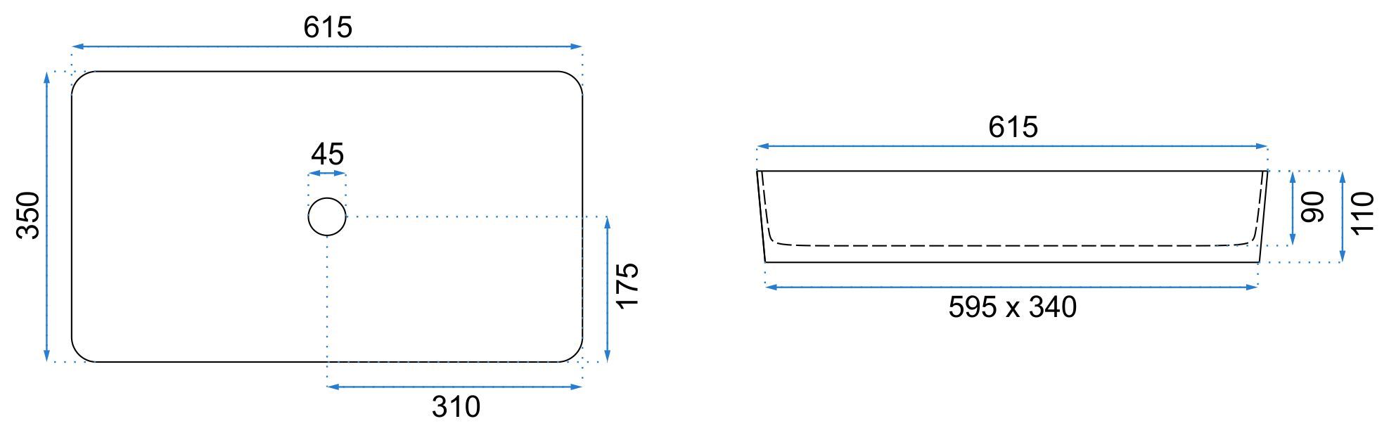 REA Malja-allas DENIS musta kivi matta, 61,5X35X11CM