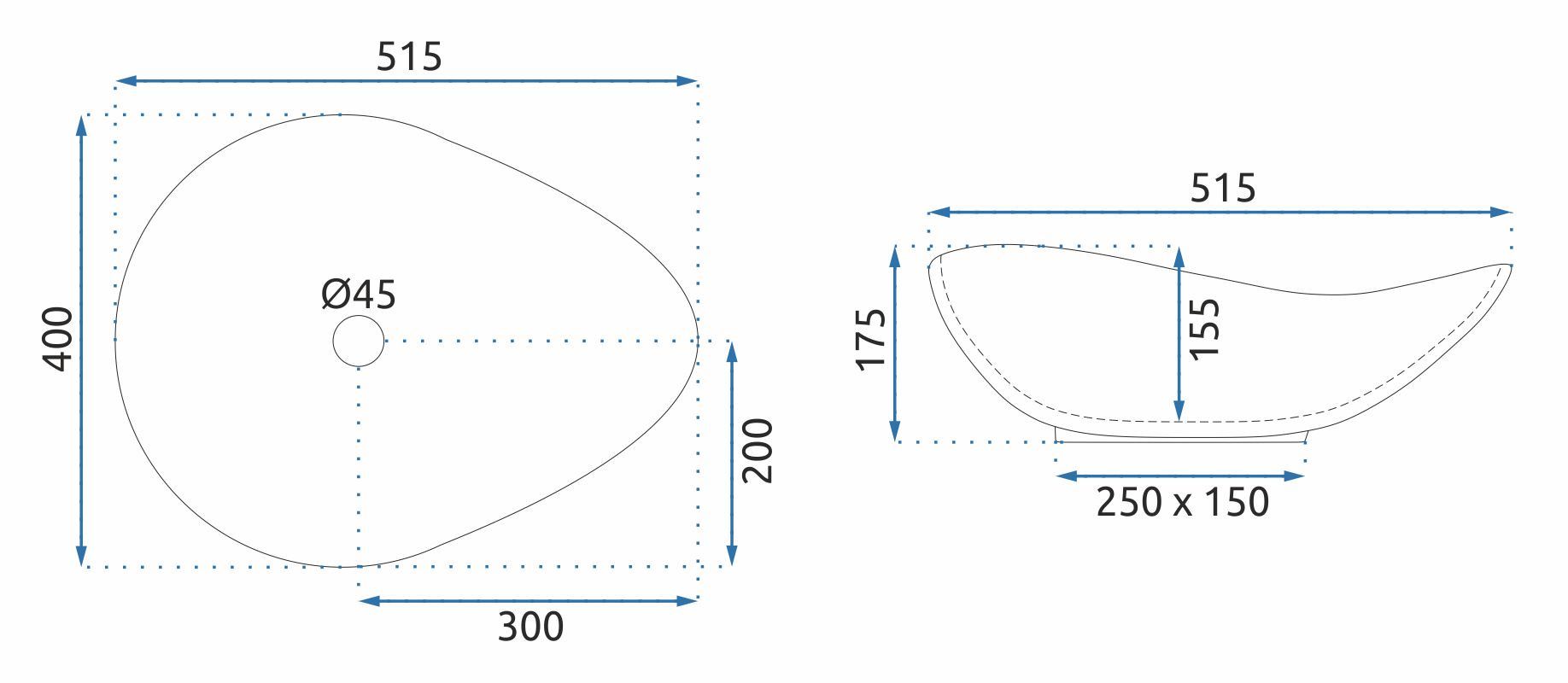 REA Malja-allas DORA stone, 51,5X40X17,5CM