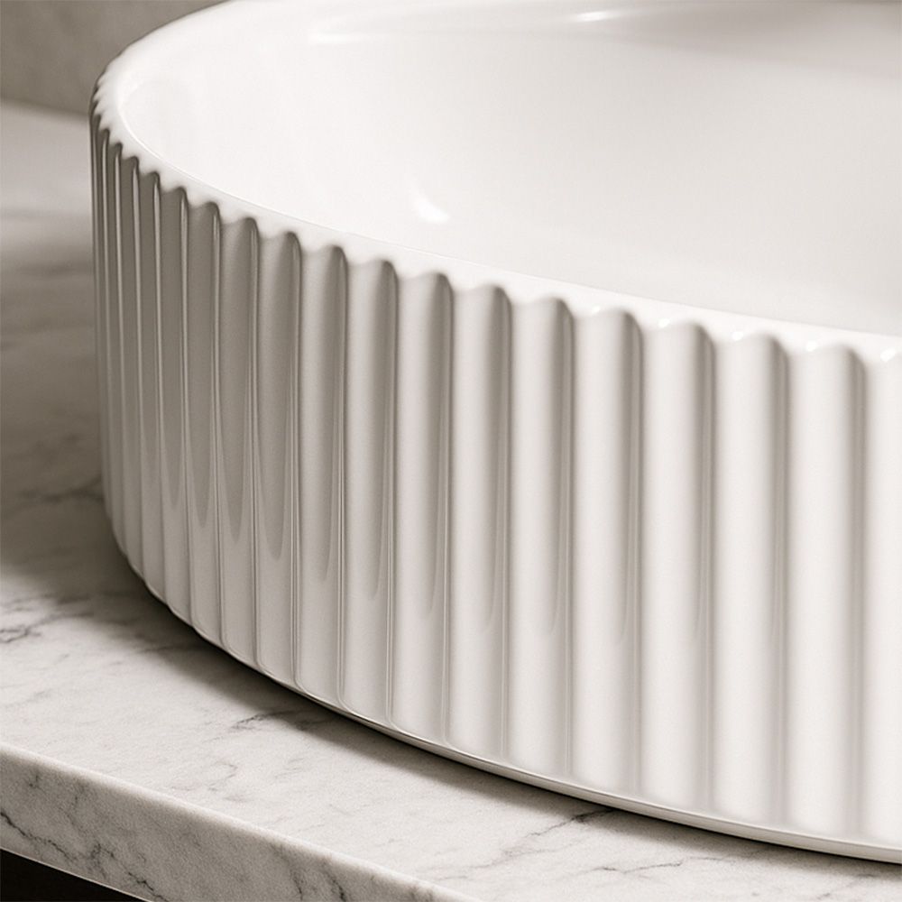 Esittelemme sinulle työtasoisen pesualtaan, joka antaa kylpyhuoneellesi modernin ilmeen ja korkean toimivuuden. Pesuallas on valmistettu korkealaatuisesta saniteettikeramiikasta. Ulkopinta on uritettu, mikä luo mielenkiintoisen visuaalisen vaikutelman, joka antaa kylpyhuoneelle ainutlaatuisen luonteen. Hana ja pohjaventtiili eivät sisälly toimitukseen.