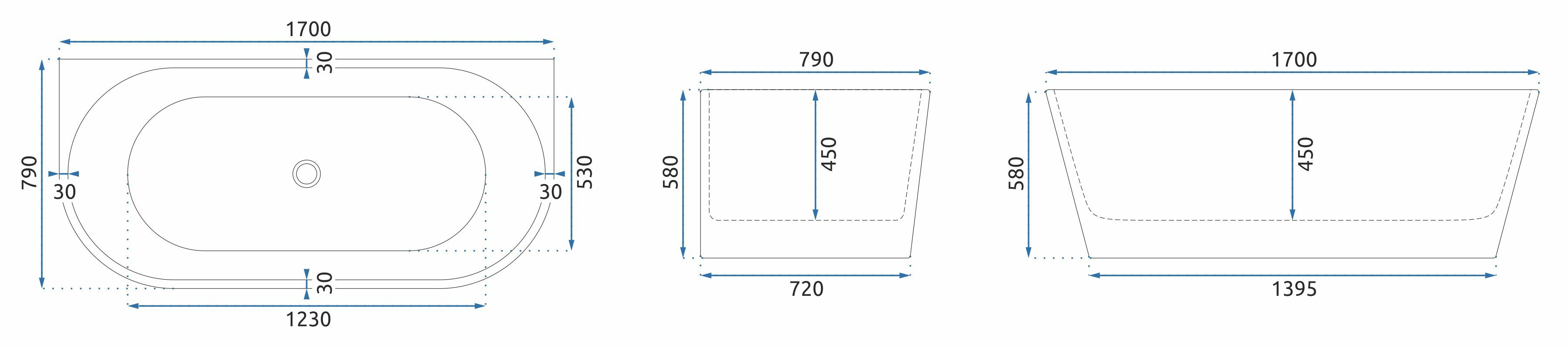REA Seinän Viereen Asennettava Amme OLIMPIA 170cm valkoinen, 170X79X58CM