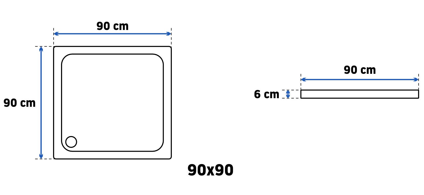 REA suihkuallas SAVOY Valkoinen, 90X90X6CM