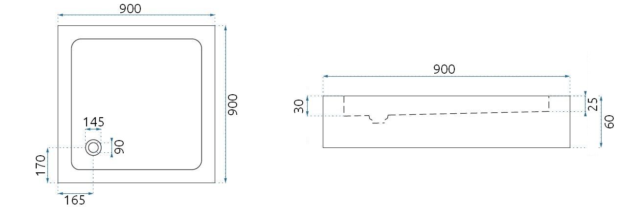 REA Suihkukaappi CITY 90x90 Musta, 90X90X190CM + suihkuallas savoy valkoinen 90x90