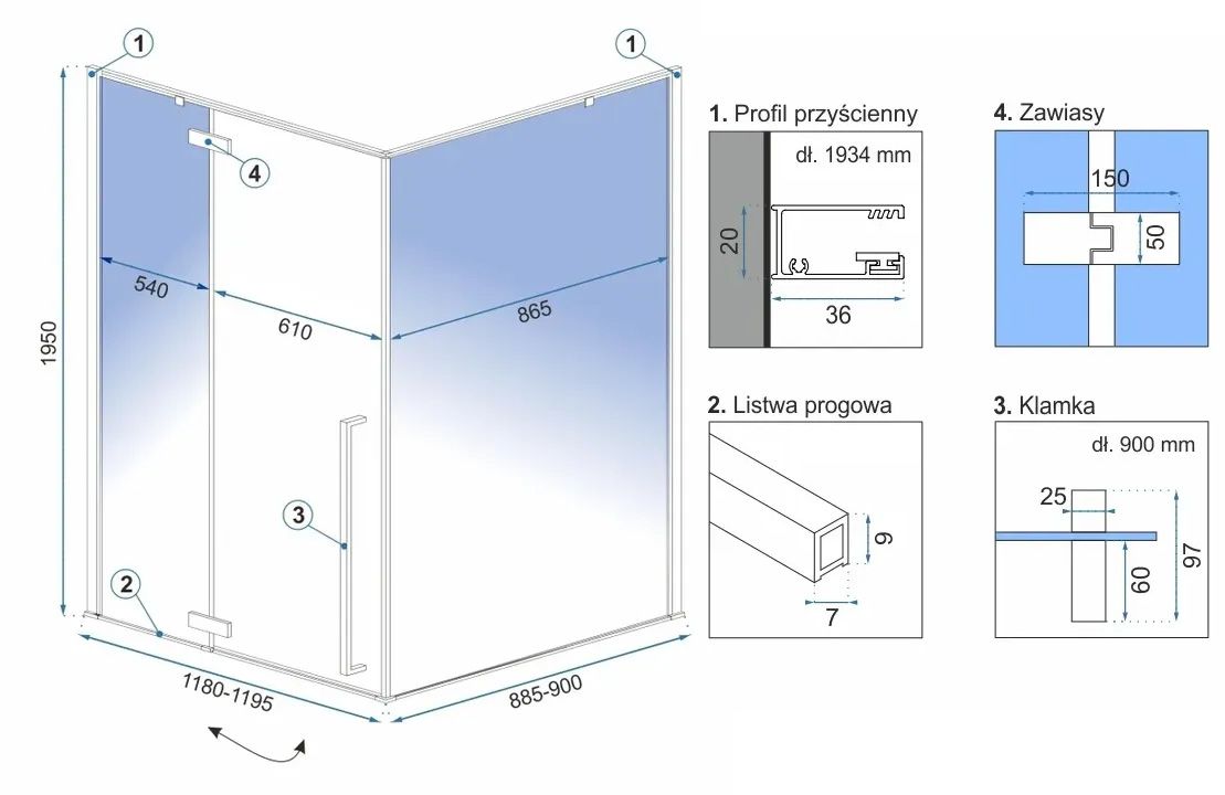 REA Suihkukaappi FARGO 90x120 kulta, 90X119,5X195CM