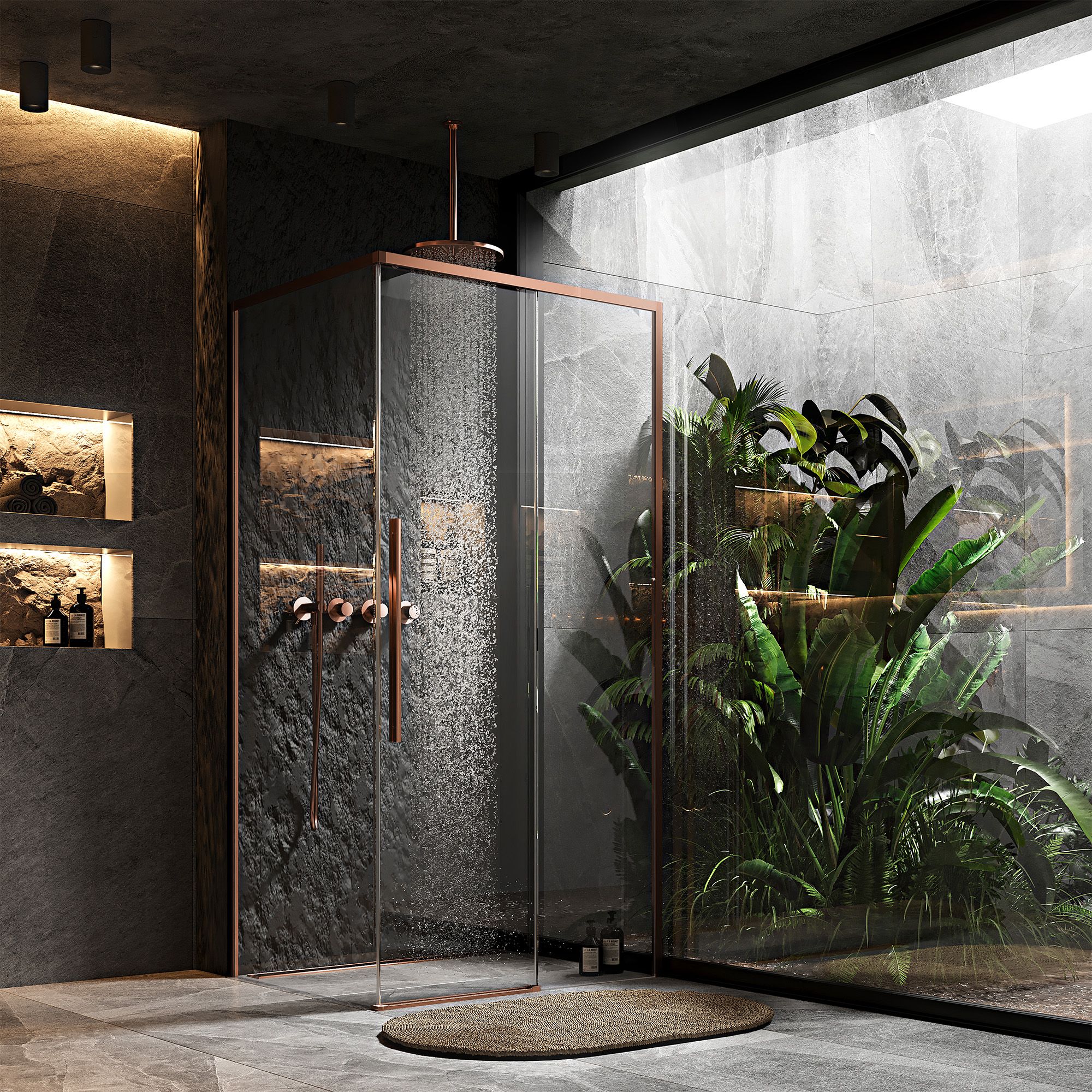 REA Suihkukaappi SOLAR 100x80 Harjattu kupari, 100X80X195CM + suihkuallas