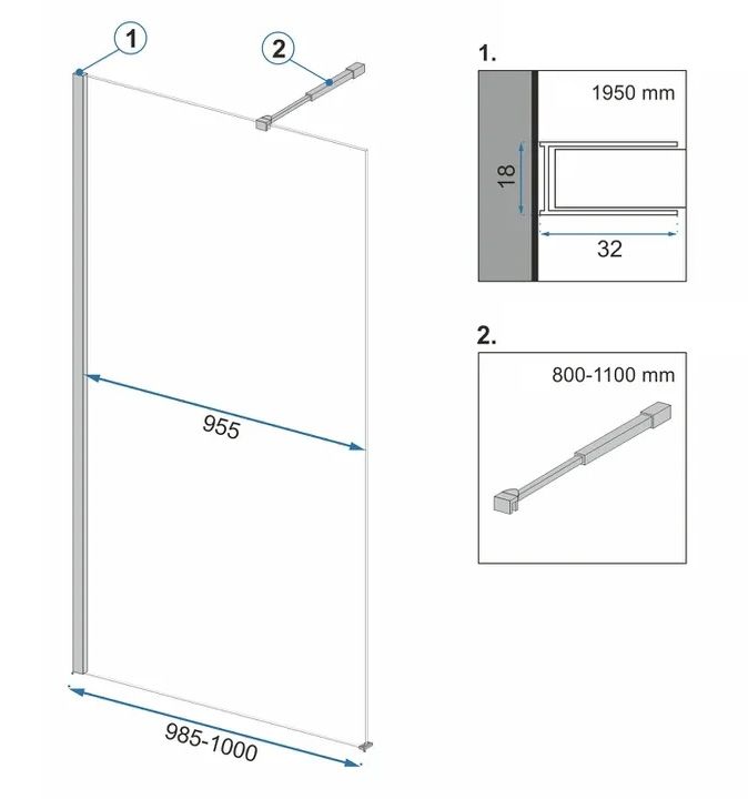 REA Suihkuseinä AERO 100 musta, 1,8X100X195CM