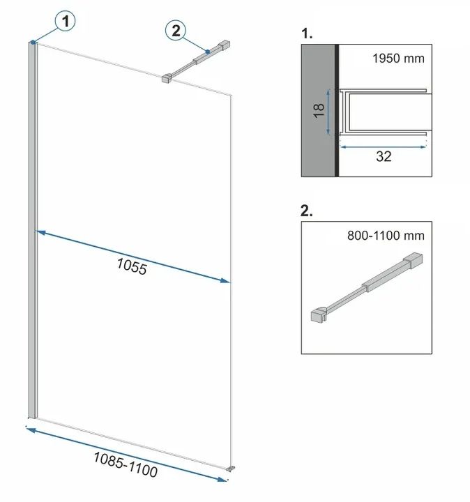 REA Suihkuseinä AERO 110 musta, 1,8X110X195CM